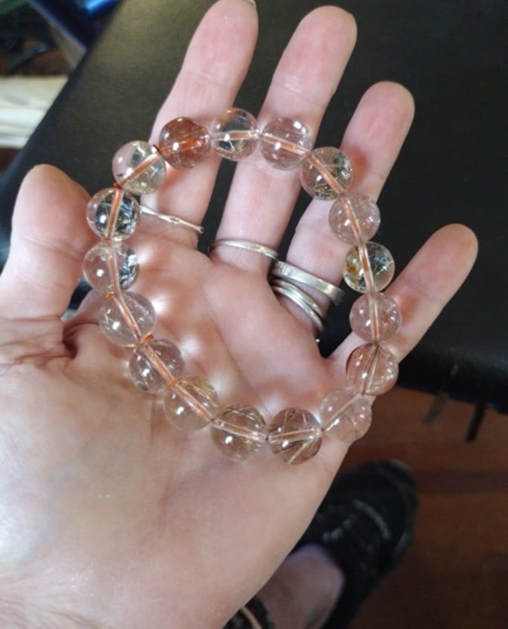 Absolutely Gorgeous ultra high quality AAA +++ natural Brazilian silver and gold rutile quartz bracelet. Stunning clarity to see the beautiful gold and silver rutile inside. Absolutely gorgeous. Beads are large 12 mm wide. Don't miss out on this beautiful bracelet.