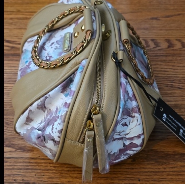 Additional Features: Attached leather wristlet/cosmetic case with zipper closure