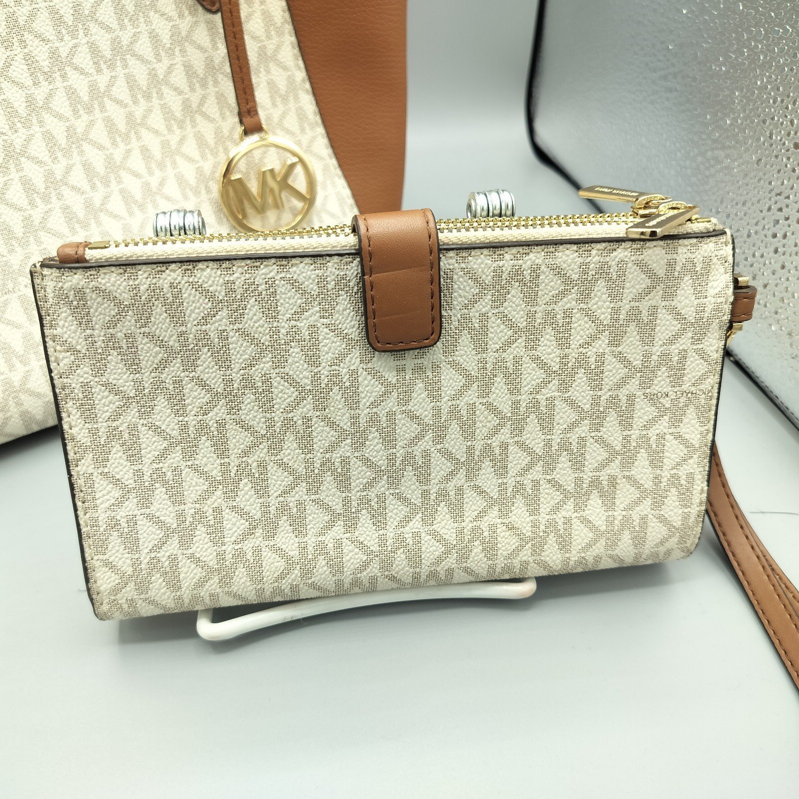 MICHAEL KORS CHARLOTTE LARGE MONOGRAM TOP ZIP TOTE & VANILLA WALLET