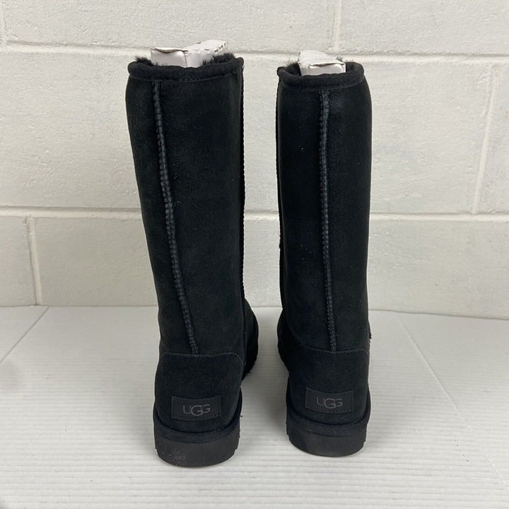 UGG Classic Tall II 2 Black Water-resistant Suede Sheepskin Boots Size 7 Women