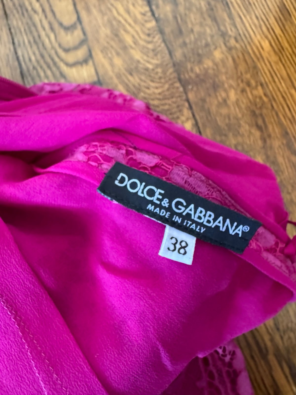Turn heads with this stunning pink lace sheath dress from Dolce & Gabbana, a house celebrated for its timeless Italian glamour. The structured design and delicate grosgrain waist accent create a beautifully feminine shape, perfect for weddings, special events, or elegant evenings out.