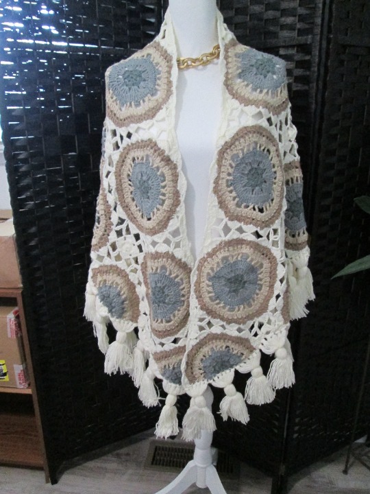 handcrafted shawl, crochet shawl, boho shawl, bohemian wrap, Saachi shawl, Indian handmade shawl, acrylic shawl, lightweight shawl, women's crochet wrap, boho fringe
