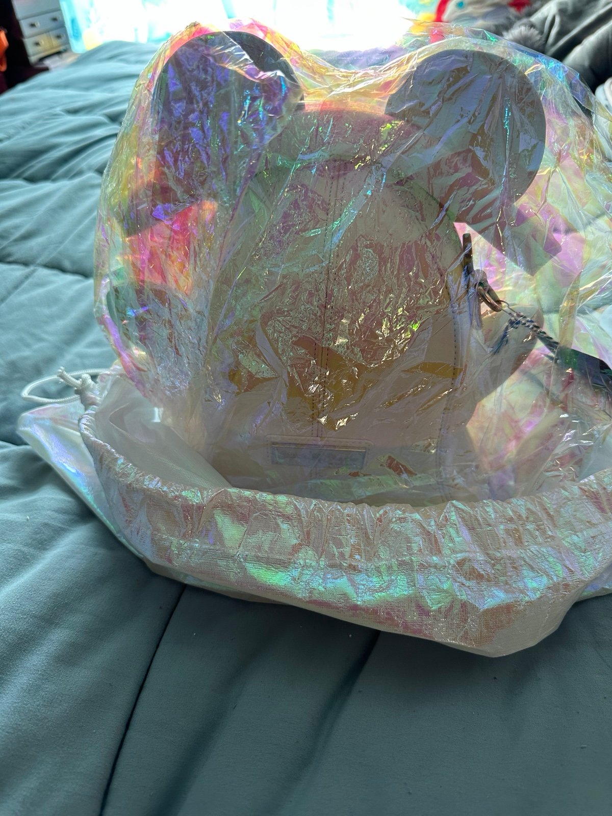 Your wardrobe is in for a scare with this spectral Stitch Shoppe bag. The Stitch Shoppe Mickey Mouse Ghost Glow in the Dark Crossbody Bag glows in the dark and is a 3D figural design. It features a vegan leather Mickey Pumpkin bag charm and embroidered details. It may spook you just how much you’ll be able to fit in this spacious purse.