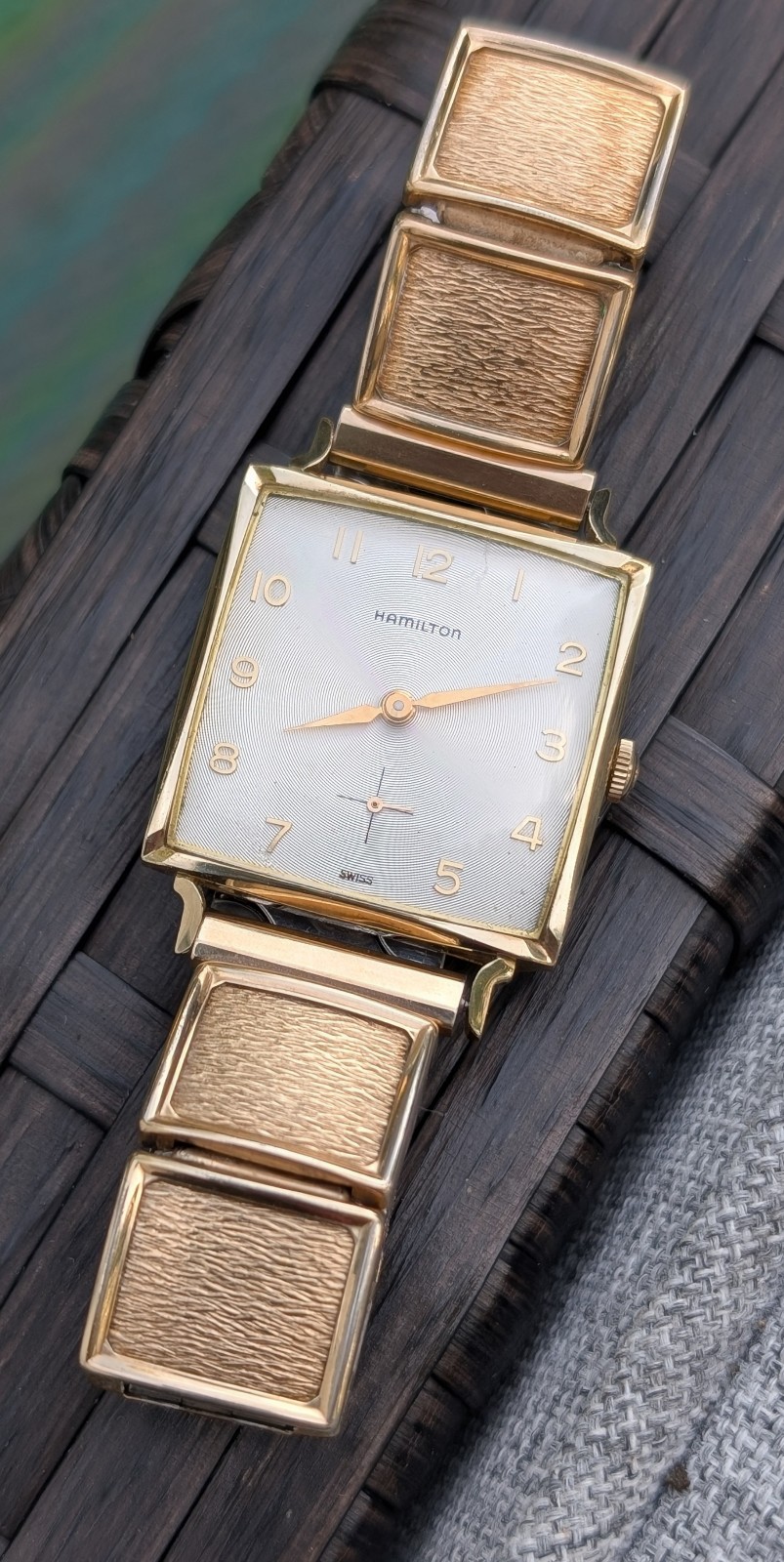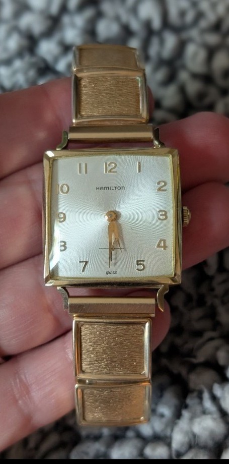 It comes on its original Kreisler expansion band according to the 1959 Hamilton catalog! The bracelet is in very good condition and will fit a larger wrist. You can see in the pics that it's a little loose on my 6 1/4 inch wrist.