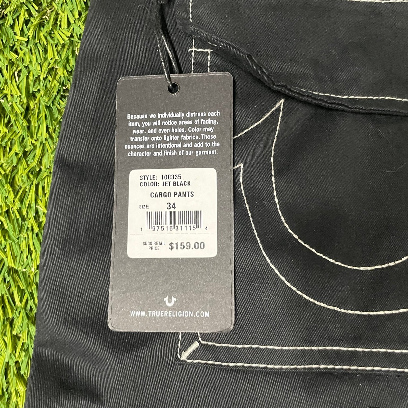 True Religion Cargo Pants, Jet Black, Men’s 34, Streetwear, Utility Pants, Contrast S