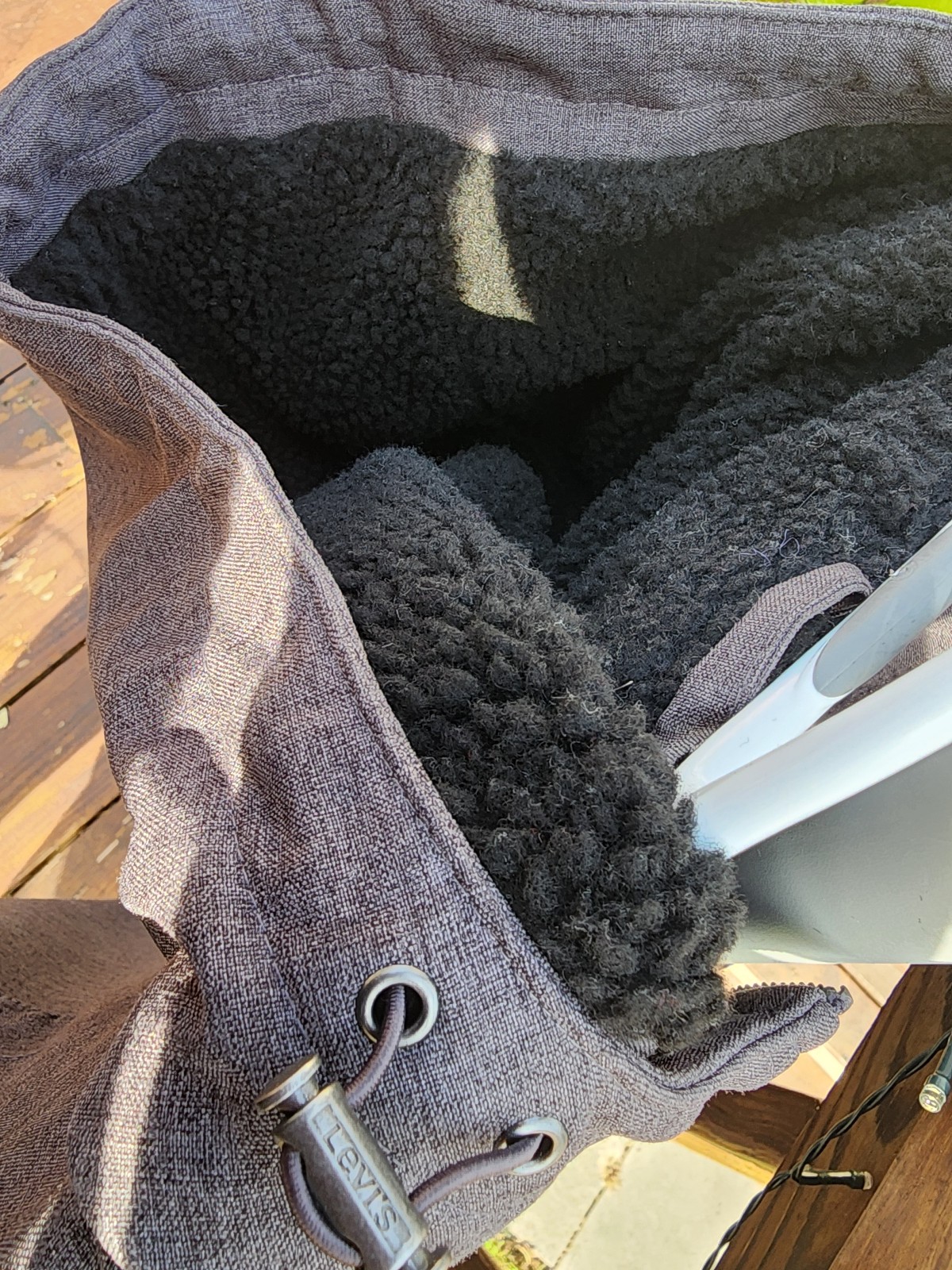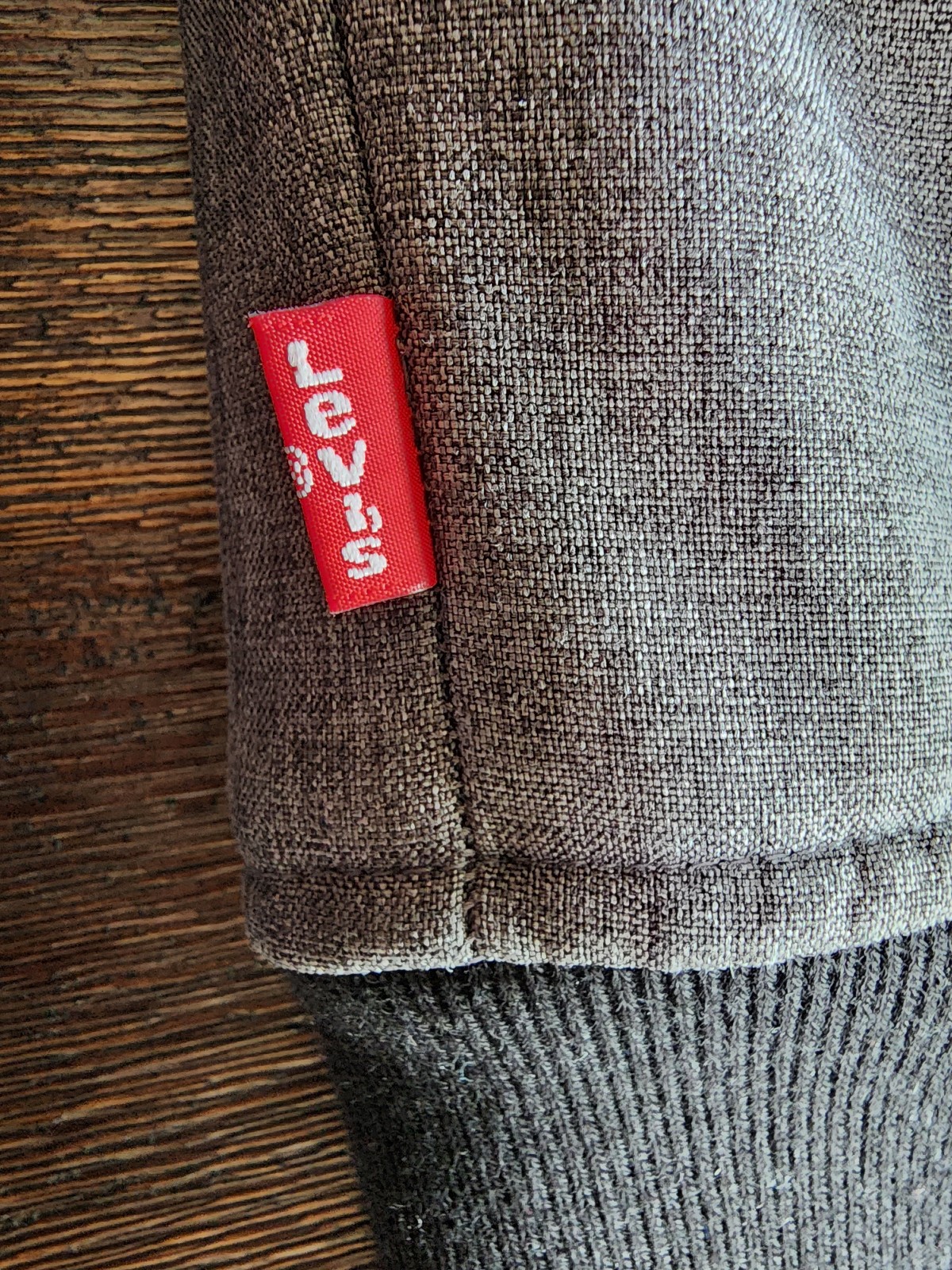 This Levi's Zip Up Hooded Bomber Jacket in Gray is a stylish and functional outerwear piece for men. Made with polyester outer shell and lined with soft polyester material, this jacket provides warmth and comfort. The medium size and regular fit make it suitable for most men, while the bomber style adds a trendy touch to any outfit. With its hooded design and zip closure, this jacket is perfect for chilly weather and casual everyday wear. This item is in perfect conand has no visible imperfections