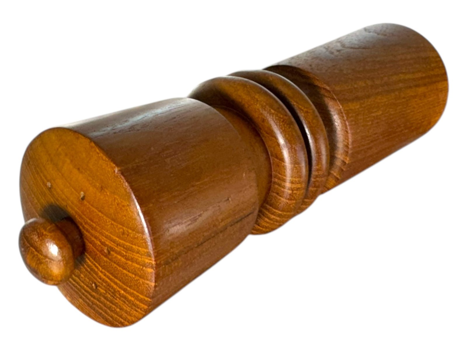 Add a touch of vintage charm to your kitchen or dining table with this Dansk Teak Salt Shaker and Pepper Mill, crafted in Thailand. Modeled after the iconic Chess Queen design by Jens Quistgaard, this sculptural piece is made from warm, beautifully grained teak wood. The top functions as a salt shaker, while the base houses a pepper mill, offering practical use with timeless mid-century aesthetics. A great piece for collectors or anyone who appreciates classic Scandinavian-inspired design.