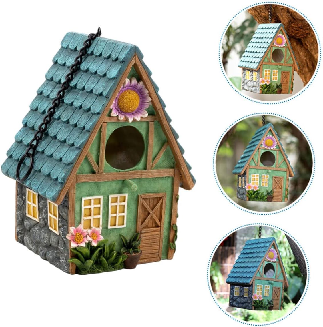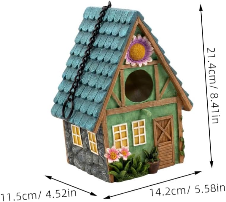 Package List 1 x Bird Nest Characteristics -Material: Resin Bird Breeding Nest -Hook style: style Hanging Bird Nest -Color:Multi Handwork Birds Shelter -Size: 21.40X15.50X13.00cm/8.41X6.09X5.11in Birthday -Made with , strong and breathable, not easily deformed Creative Handicrafts. -Simple and elegant, rustic style, close to nature, chic style, casual and generous, giving you peace and closeness to nature Bird House. -This bird hut is super easy to dangle inside or outside your home. Creative Birds House -This provides a hideaway for birds who are escaping predators and a sheltered warm place for birds from cold biting winds, rain or snow Art Crafts. -It can be hung from a tree branch or hooked on your porch Parrot Shelter.Goods DescriptionParrot Shelter Do you want to decorate your garden? Do you want to find a warm house for your lovely bird? This multifunctional product is suitable for decorating the room and keeping a bird.Home Decoration And also you can keep a bird in your garden.Bird Breeding Nest If you just want to decorate your room, you can buy some beautiful flowers and put it on this birdhouse