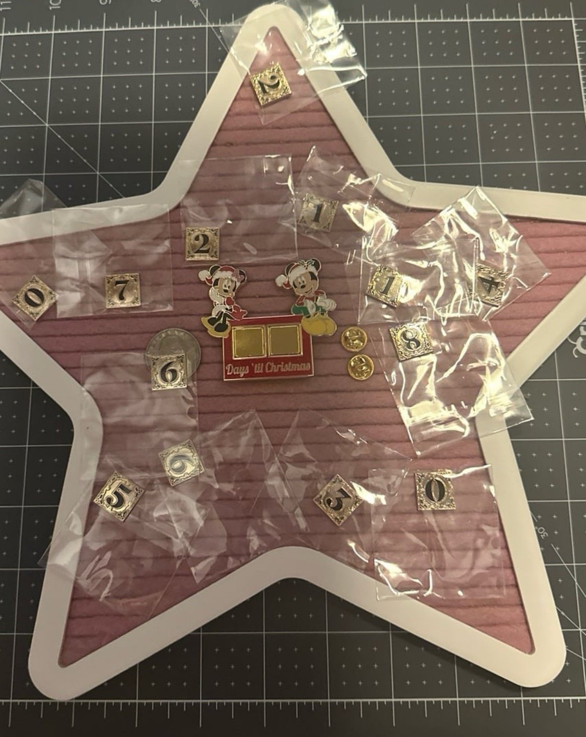 “This delightful collectible features everyone’s favorite duo dressed in their festive best, joyfully counting down the days until Christmas. Easily change out the magnetic tile numbers everyday and pin it onto your jackets, hats, bags, and more, and enjoy Mickey and Minnie's seasons greetings.”