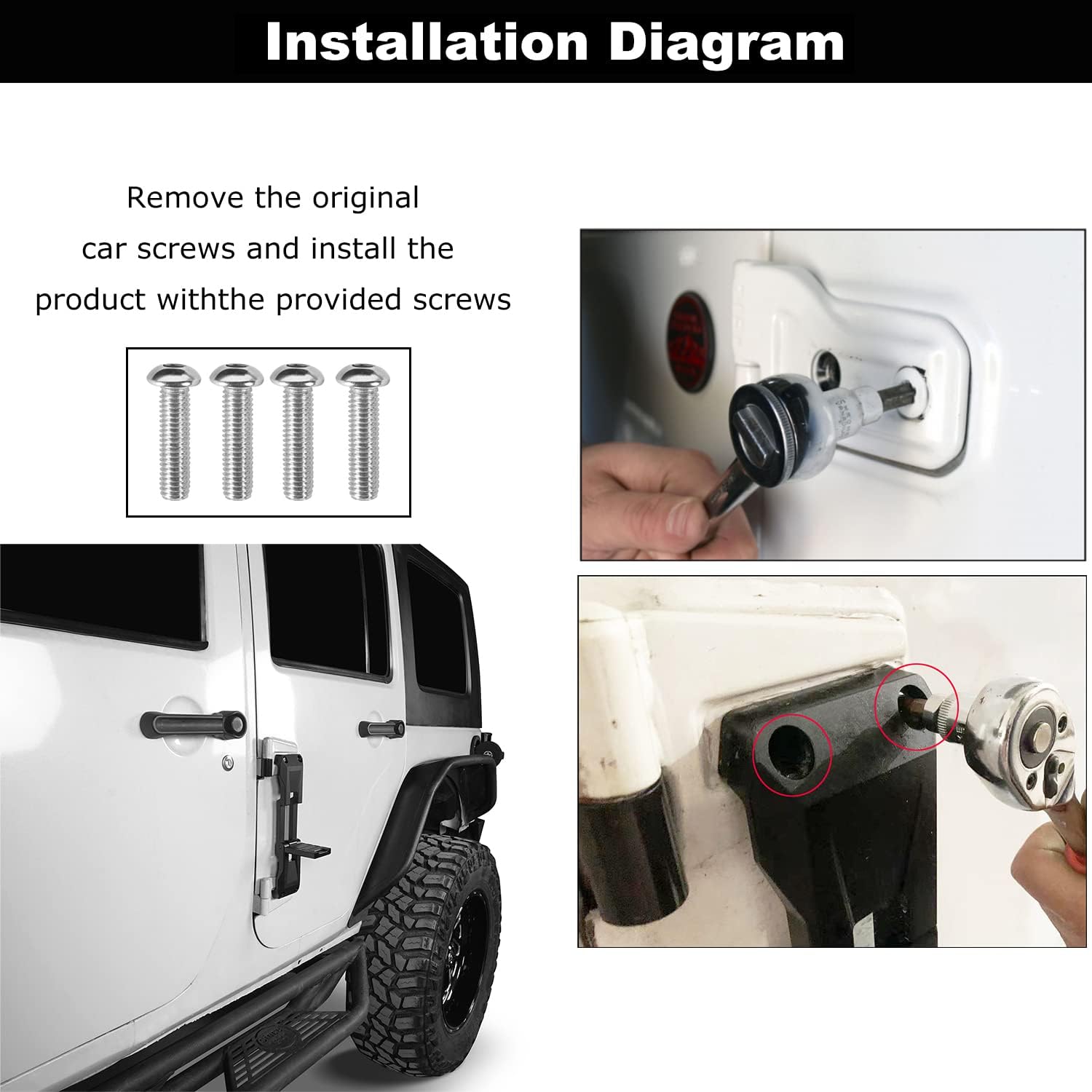 • ➤【Compatibility】Hooke Road aluminum door hinge step compatible with 2007-2026 Jeep Wrangler JK JL & Gladiator JT 2/4-Door models . Load limit: 300 lbs
