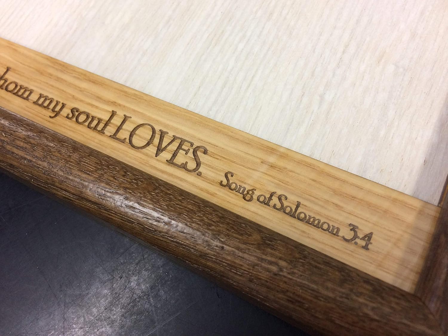 Included Components Cardboard back, Glass, Laser engraved personalized oak wood mat, Wood frame in your choice of color and style