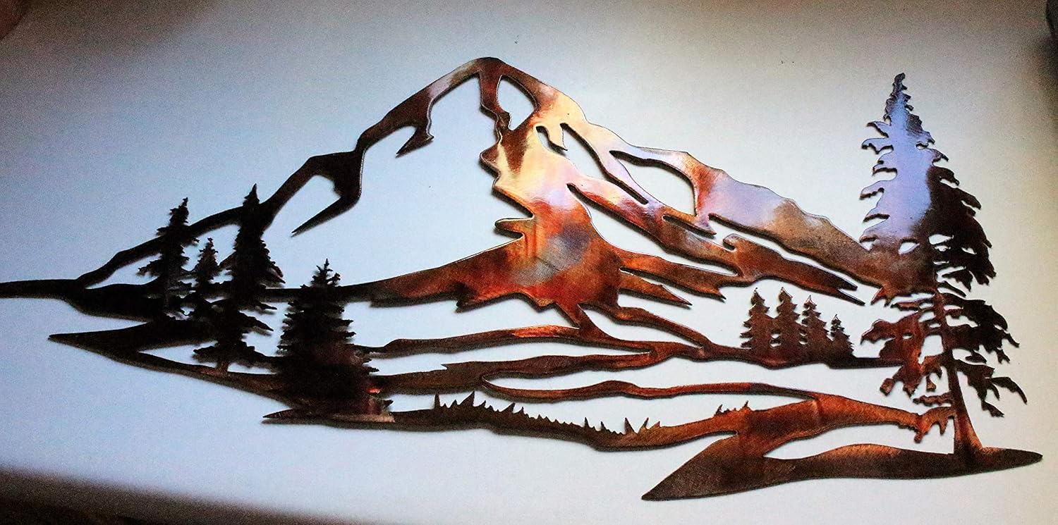 Created to celebrate the love of the mountains in Arizona . This handcrafted piece will enhance any bedroom, living room, home office, and more. This piece is 100% handcrafted in the USA. Finish: Copper/Bronzed Plated with a clear coat. Approx measurements: 30" wide x 14" tall Note: Bracket welded to back for ease of hanging.