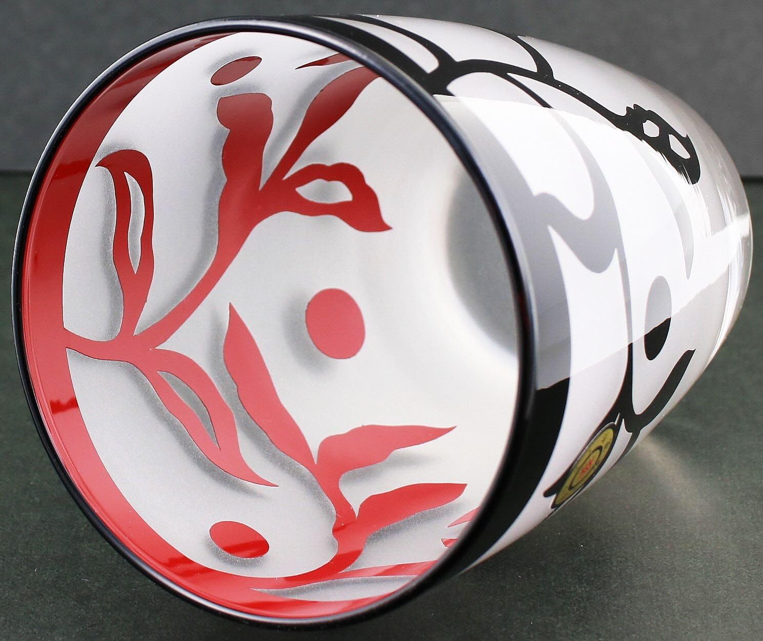Glass lacquer combines Western-style and Japanese. Our glass is lacquered using a unique manufacturing method. This lacquer will not peel off if soaked in water or hot water. Do not use in dishwasher. It is made with lacquer on the outside and sandblast technique, and the pattern is drawn. Makes a great gift! Not microwave safe, not dishwasher safe