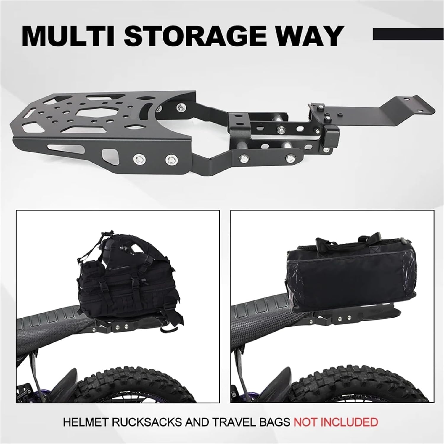 Dear, after placing your order,In order to ensure that our products match your car, please send me the model, version, year and vin of the car, preferably with pictures to prevent mistakes! Thank you for your cooperation and wish you a happy life!Condition: Material: Aluminum + Steel Color: BlackSurface Finish: Powder CoatedThe rear rack and side racks can be mounted together or separately.Fitment:For Surron light bee XFor Segway X160For Segway X260Package Included:1 set of Rear luggage rack andSaddlebag support racks