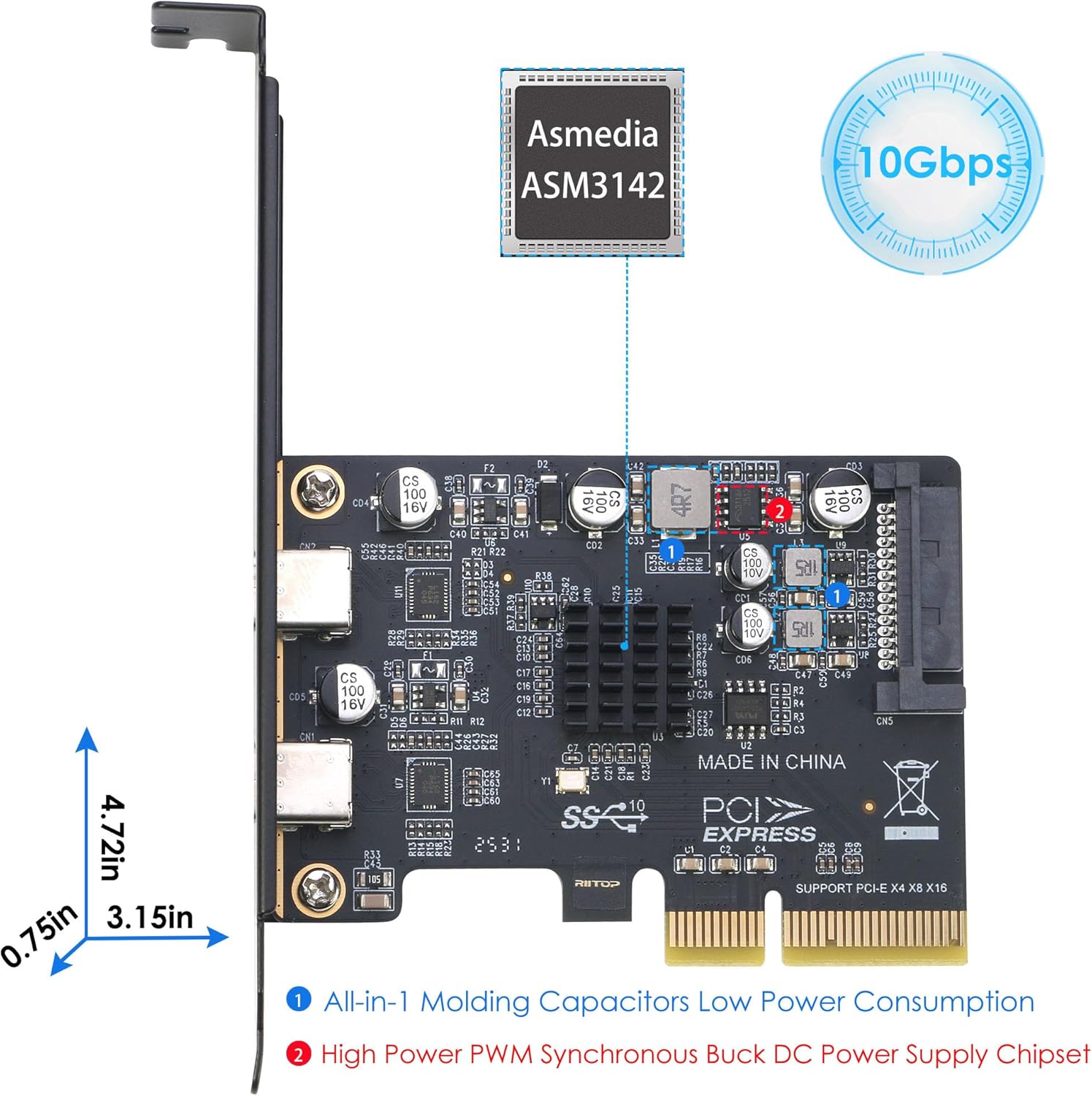 PCIe to USB C Video Expansion Card [10Gbps] + PCIe to 2xUSB C Data Expansion Card [10Gbps]