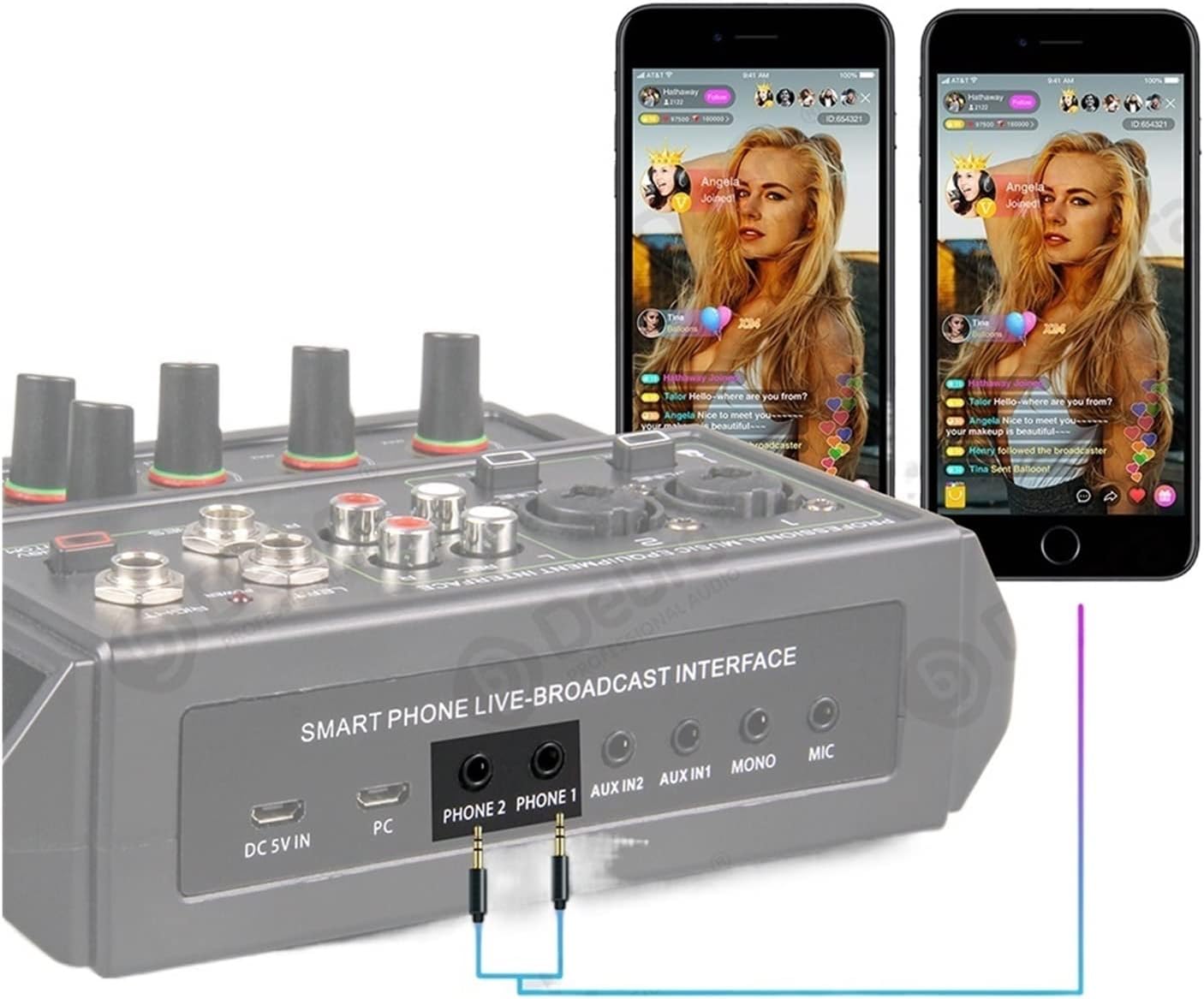 Product parameters: 1. Input channel sensitivity microphone 60db ?? Stereo channel input 40db ? ?EFX send 20db ? ?EFX ,RETURN 20db 2. Output :4V MAX 3. Signal-to-noise ratio :-80db 4.Parametric equalizer :Hight+-15db/12KHZ ? ? ? ? ? ? ? ? ? ? ? ? ? ? ? ? ? ? ? LOW+-15db/60KHZ Notice!!! In order to reduce the bottom noise, it is best to use a mobile power supply or connect to a computer. When it is connected to a computer, it cannot be recognized or is disconnected. It is necessary to connect the DC power and the computer. The mic interface can only use lines with 3 contact points.