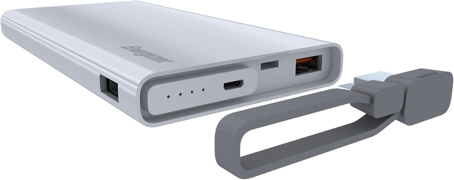 The Energizer Ultimate RokPower-10004QC PowerBank shows that size doesn't equal capability-it's both thin and powerful. With a Qualcomm 3.0 Quick Charge chipset, it allows for easy and fast charging for compatible handsets. You can even reverse the USB cable to recharge the power bank itself. 10,000mAh capacityBuilt-in micro USB cableQualcomm 3.0 Quick Charge chipsetRapid charge of any Android-compatible smartphone like the Samsung Galaxy S8 & more3A output with Quick Charge or 2.4A with non-Quick Charge smartphonesRecharges in about 5 hoursAdvanced protective circuit against overcharge, over discharge, overload & short circuitIncludes micro USB to USB cable