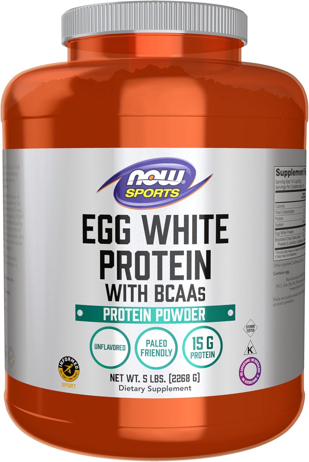NOW Sports Nutrition, Egg White Protein, 20 G With BCAAs, Creamy Vanilla Powder, 1.5-Pound