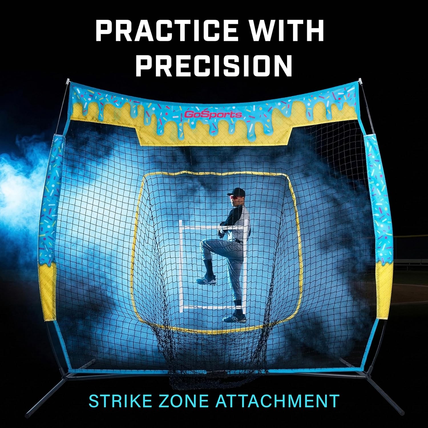 GoSports 7 x 7 ft Ice Cream Drip Baseball & Softball Batting Net - Full Size Hitting & Pitching Practice Net with Strike Zone and Carry Case