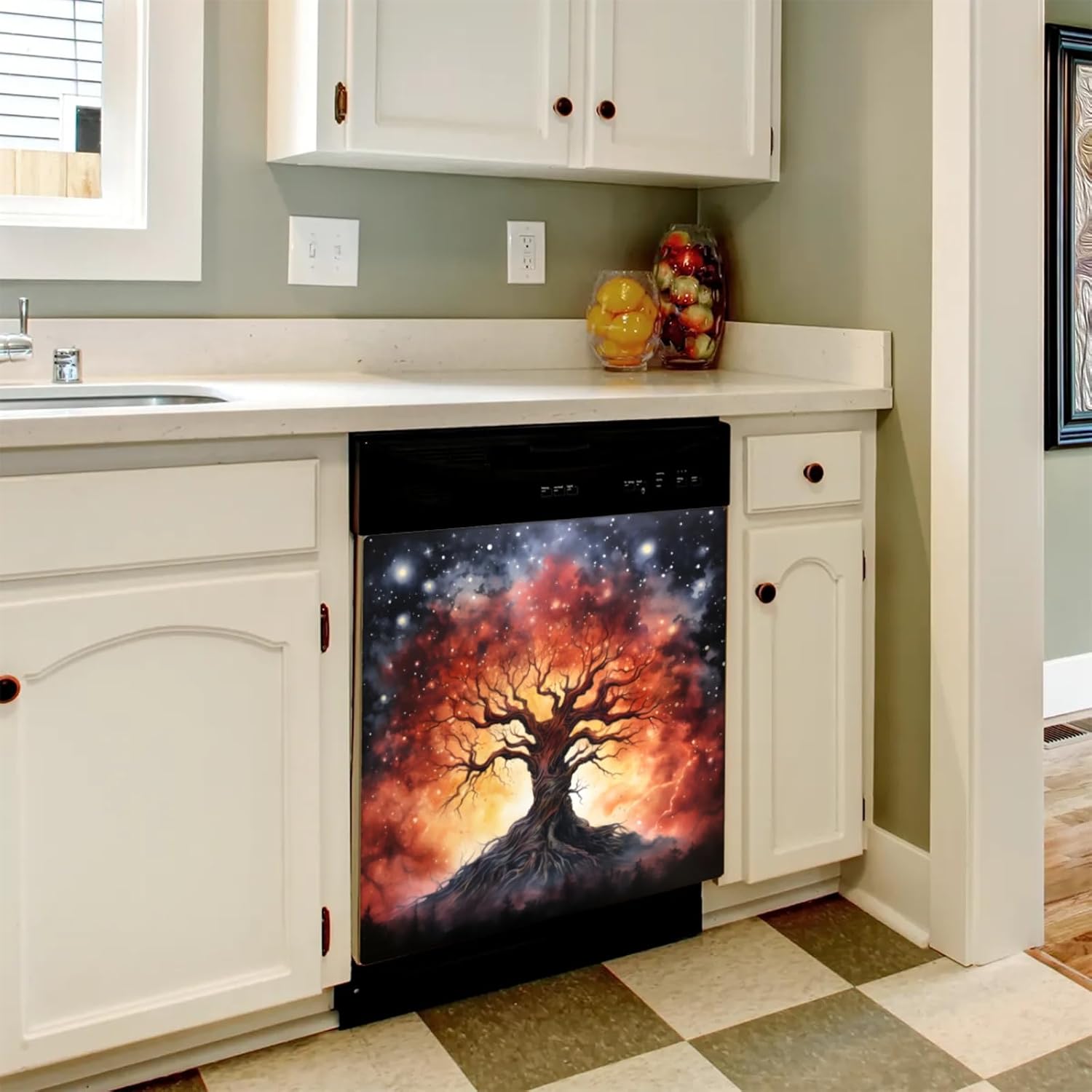 Dishwasher Magnet Cover 23x26 inch – Trimmable Refrigerator Magnetic Panel Decal for Kitchen Appliances, Reusable Magnetic Sticker for Dishwasher, Fridge, Washing Machine, Easy to Install & Remove Standard Size & Trimmable Measuring 23 x 26 inches, this magnetic dishwasher cover fits most standard appliances like dishwashers, refrigerators, and washing machines. Need a perfect fit? Just trim it with scissors for a seamless, custom look. Strong Magnet & Durable Material Made from high-quality PVC with a strong magnetic backing, this decorative appliance cover stays securely in place—water-resistant, tear-resistant, and long-lasting with no deformation over time. Easy to Apply & Remove – No Adhesives Needed Installs in seconds with no tools or sticky residue. Just place it on a clean metal surface, and remove or reposition as needed. A hassle-free way to refresh your kitchen décor! Covers Scratches & Enhances Decor Not just beautiful—it’s functional too. Hide dents, scuffs, or outdated finishes on your dishwasher or fridge while upgrading the look of your entire kitchen with a touch of rustic charm or seasonal style. Great Gift Idea for Any Occasion Surprise your guests or give it as a gift! Ideal for Mother’s Day, Thanksgiving, Christmas, Halloween, or housewarming. A thoughtful and affordable way to transform any space. Made of durable PVC material with a magnetic backing, this reusable cover attaches firmly to any magnetic surface—from dishwashers and refrigerators to filing cabinets and washing machines. Simply trim to size if needed and smooth it into place for an instant makeover. When it's time for a new season or style, just lift and replace—no sticky residue, no damage. Perfect for renters, seasonal decorators, or anyone who loves a quick and easy kitchen upgrade. A great gift idea for family, friends, or yourself!