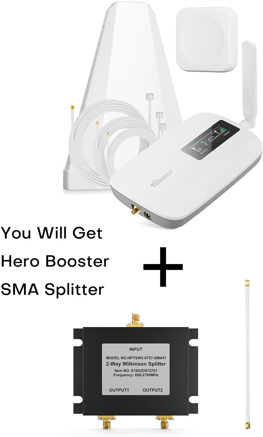 Connect both a whip and panel antenna via a splitter to expand coverage to 3,500โ4,000 sq ft, enhancing signal range.