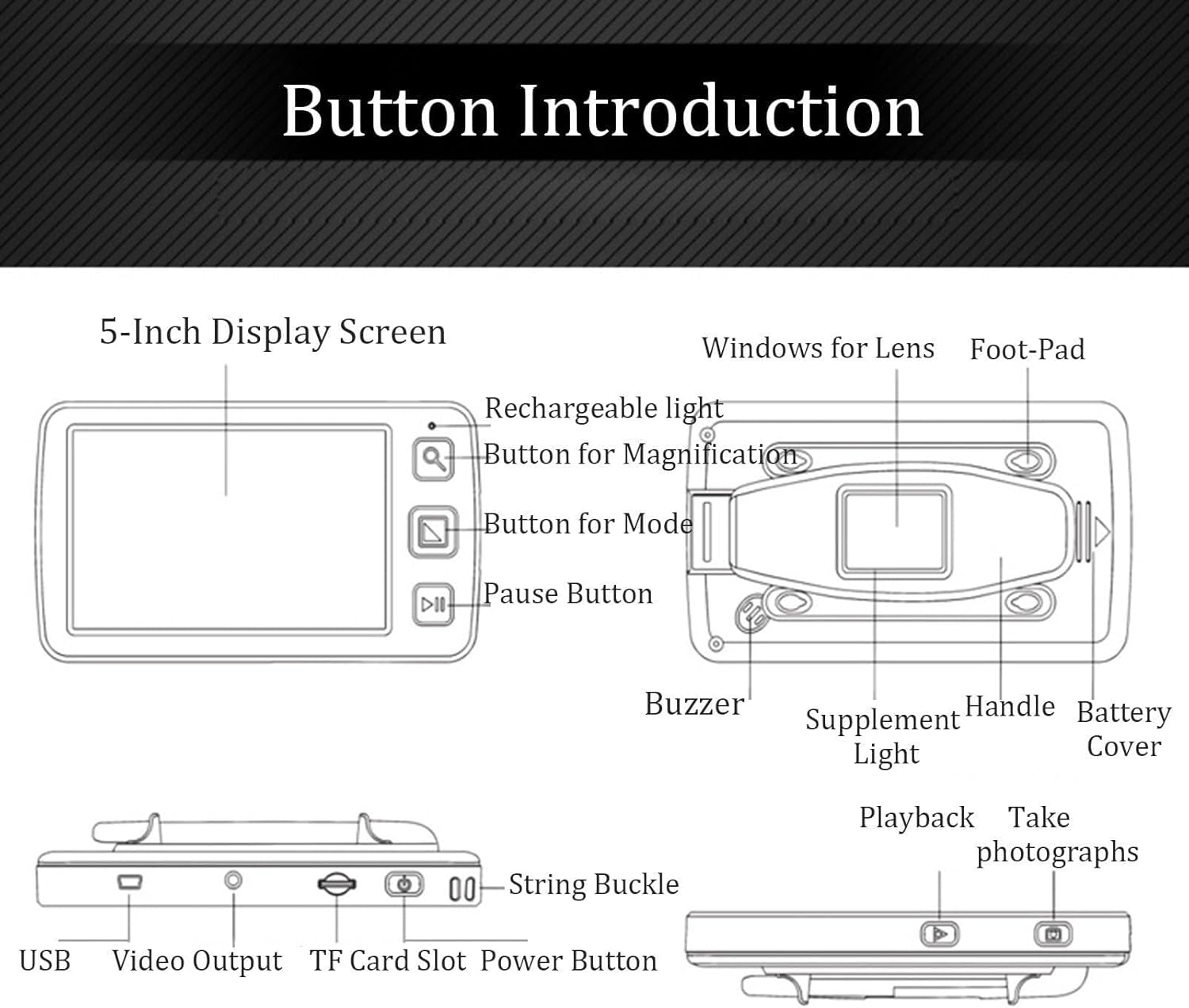 Specification:Screen size: 5 inches IPS full color LCD displayZoom speed: 4X ,8X ,16X ,24X ,32X 5 multiples can be switchedBrightness adjustment: Support 5 levels of brightness adjustmentMemory function: SupportImage freeze: SupportStorage and playback: SupportStorage expansion: Support up to 32G TF cardFlashlight function: Support LEDTV output: AV outputBracket handling: SupportWorking time: Lasting more than 4 hoursBattery capacity: 2500mAH large capacity rechargeable lithium batterySize: Approx. 155 * 85 * 30mm , 6.1 * 3.3 * 1.2 inWeight: Approx. 342 gPackage Iist:1 * Host1 * USB Charging Head1 * USB Cable1 * Protecting Bag1 * AV video output line1 * User ManualWelcome to my store, you can choose the products you like in my store. If you have any questions, please contact us in time!