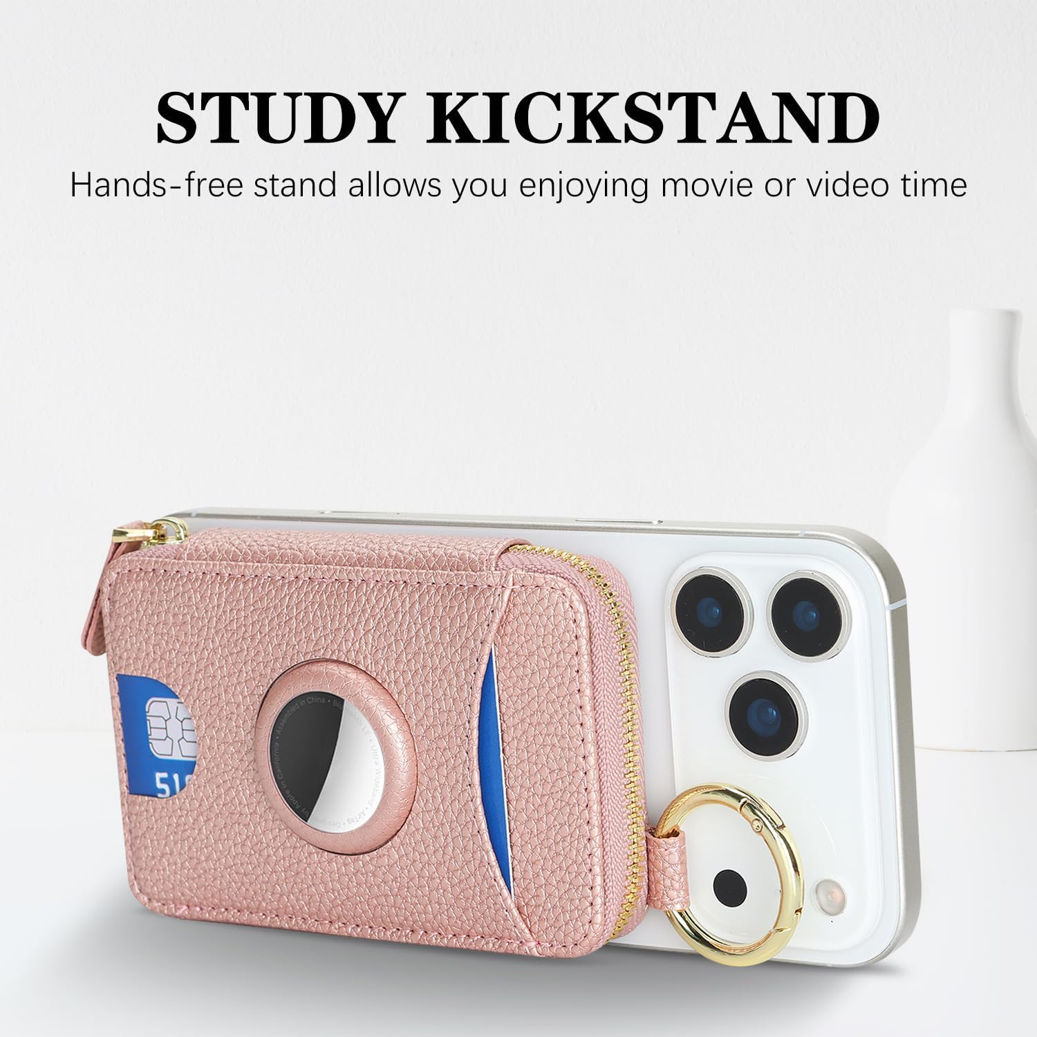 Cavor Compatible with MagSafe Wallet, Magnetic Wallet for iPhone 17/16 Pro Max/15 Pro/14 Plus/13/12 Series,Magnetic Card Holder with Adjustable Stand,Mag safe Phone Card Holder-Rose gold