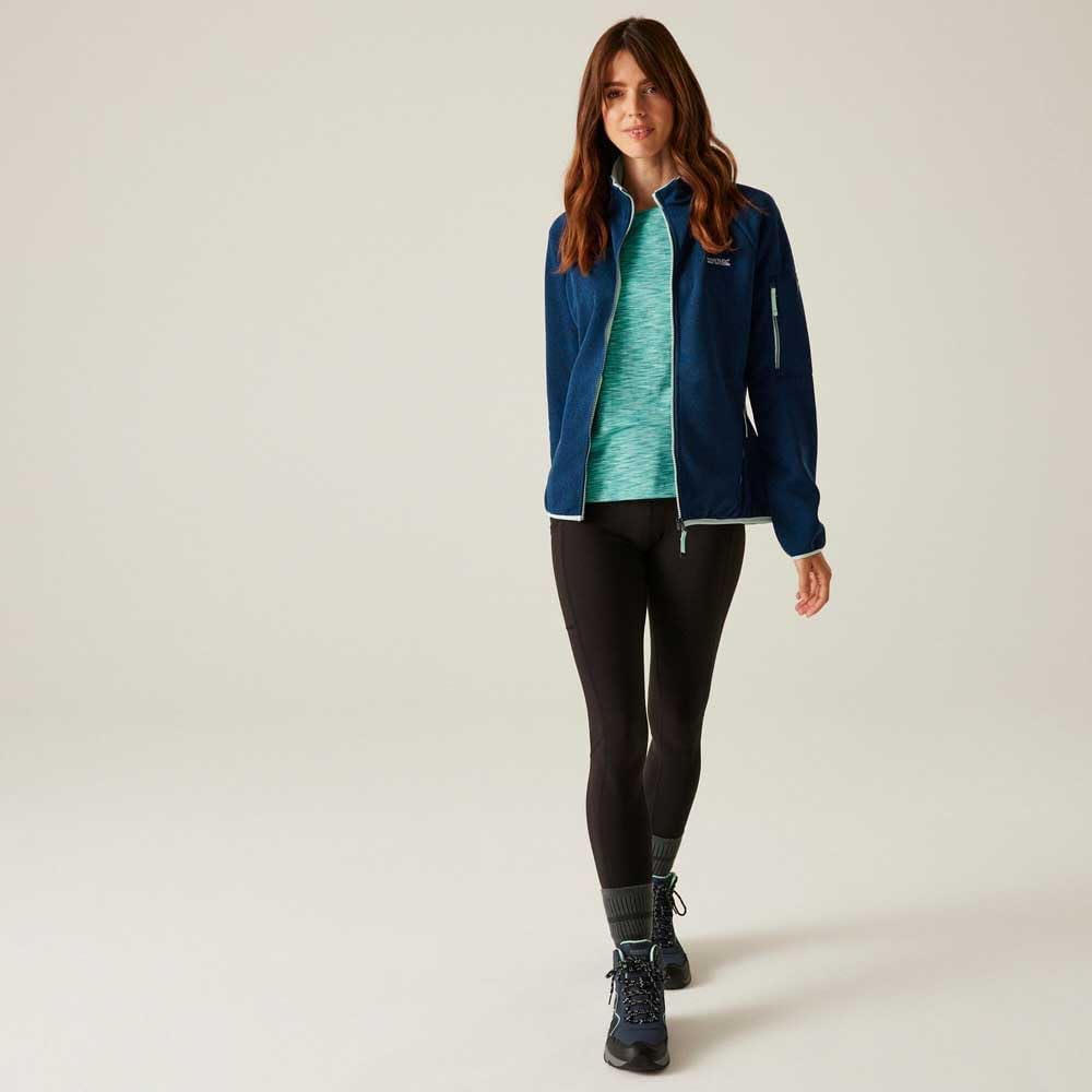 The women's Ravenhill zip jumper from Regatta is a favourite piece of clothing for hikers. It is made with a stylish and distinctive heather polyester fabric that offers long lasting use. Keep your belongings safe in the multiple zip pockets.