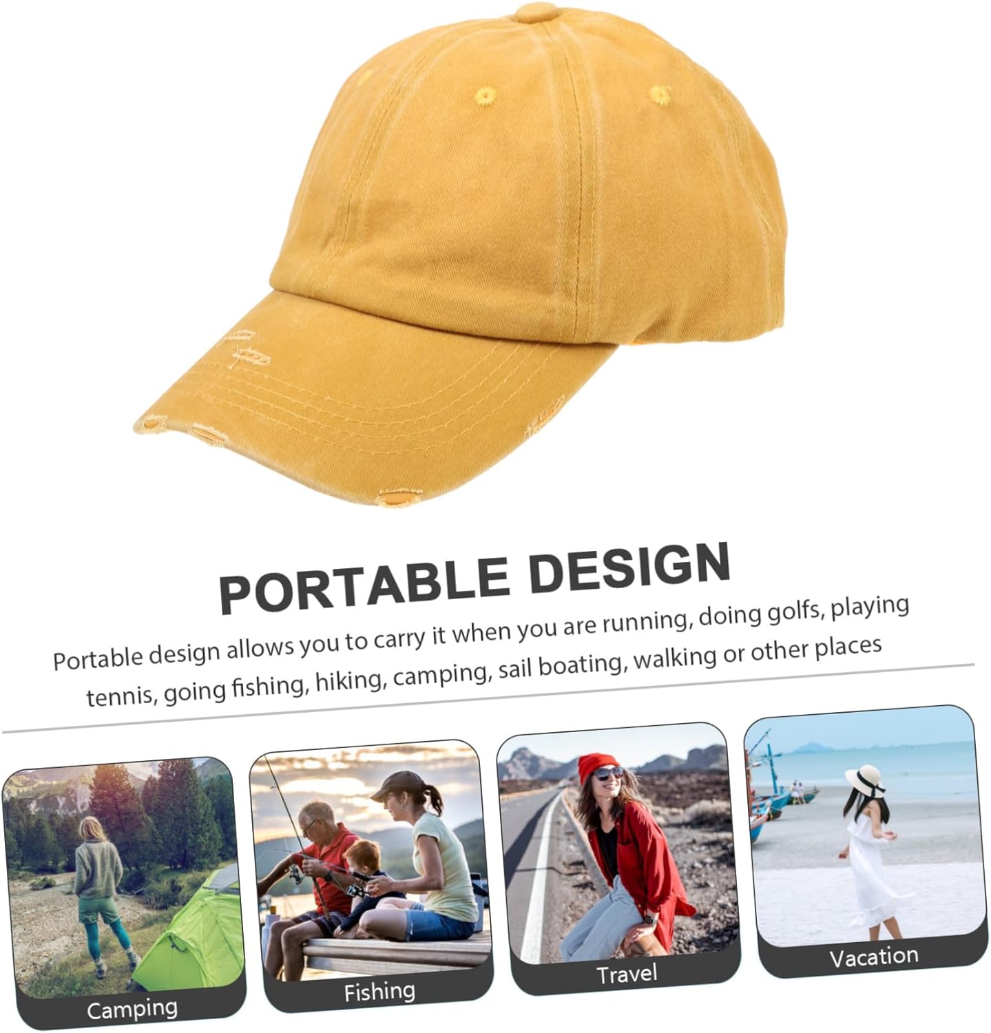 Package Include 1 x baseball hat Characteristics - Material: Fabric Breathable Hat - Size: 27.50X18.50X9.50cm/10.81X7.27X3.73inch Baseball Hat - Color: Yellow Sun Visor Caps - Fine workmanship and beautiful appearance, ensure its popularity and utility Sports Hat. - A great choice as a birthday or holiday present for your friends, girlfriend Yellow Baseball Hat. - A curved brims can block direct sunlight. Can be used for outdoor sunscreen, warm Fitness Hat. - Excellent for any outdoor such as fishing, camping, picnic, beach and more Outdoor Baseball Hat. - Birght yellow color design, eye-catching appearance makes it more attractive Women Sun Hat.Goods InformationFitness Hat Can be used for outdoor sunscreen, warm.Running Hat Made from breathable material, it is durable and lightweight, which can provide you with comprehensive sun protection and keep your hair dry.Women Sun Hat This item is a fashion hat for outdoor cycling