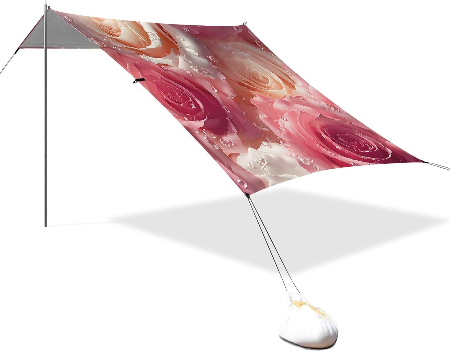 Unpack Cooling trip in 10 minutes! Our 280x320cm beach tent features silver-coated polyester oxford fabric that actively deflects heat while providing UPF 50+ protection-say goodbye to sunburns and squinting! Express your style with eye-catching, tropical-inspired prints that transform ordinary shade into a vibrant oasis. Engineered for stubborn coastal winds, the reinforced frame supports extra guy ropes alongside the included 4 refillable sandbags (use the free shovel!), 4 heavy-duty steel stakes, and 4 reinforced ropes. This high-grade anchoring system laughs at 25mph gusts while you relax. Adventure Beyond Sand: Beach lounging Lakeside camping Park picnics Fishing trips Festival hangouts Backyard "staycations