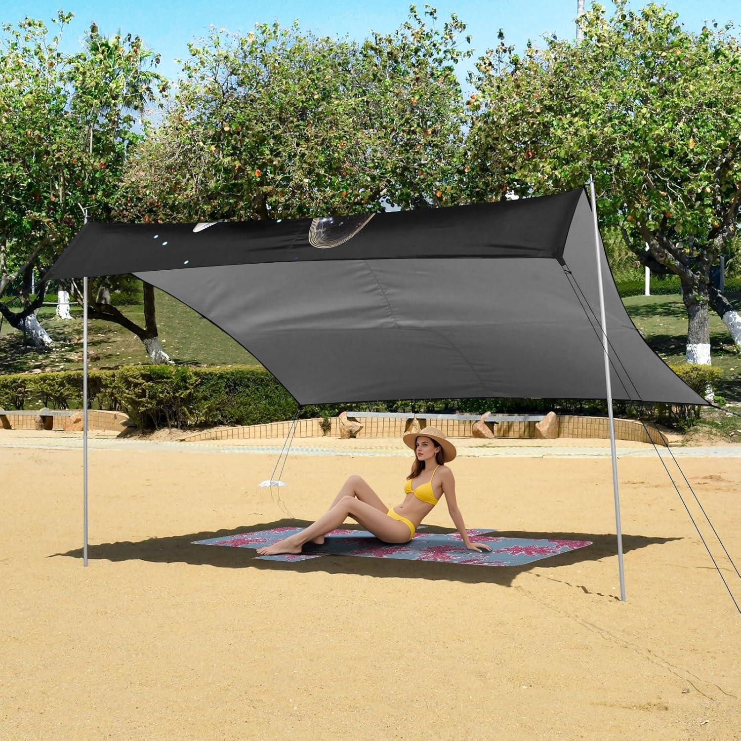 • 6-8 Person Sun Shelter: The large tarpaulin can provide shade for 6-8 people, which is enough to meet the needs of a large family using on beach, park, backyard, picnic, camping and so on.