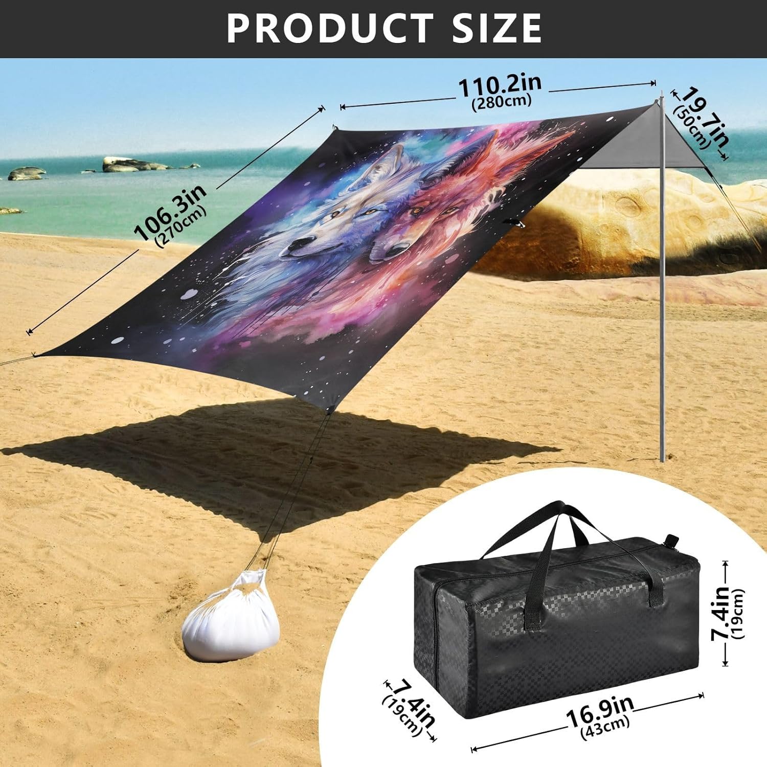 Unpack Cooling trip in 10 minutes! Our 280x320cm beach tent features silver-coated polyester oxford fabric that actively deflects heat while providing UPF 50+ protection-say goodbye to sunburns and squinting! Express your style with eye-catching, tropical-inspired prints that transform ordinary shade into a vibrant oasis. Engineered for stubborn coastal winds, the reinforced frame supports extra guy ropes alongside the included 4 refillable sandbags (use the free shovel!), 4 heavy-duty steel stakes, and 4 reinforced ropes. This high-grade anchoring system laughs at 25mph gusts while you relax. Adventure Beyond Sand: Beach lounging Lakeside camping Park picnics Fishing trips Festival hangouts Backyard "staycations