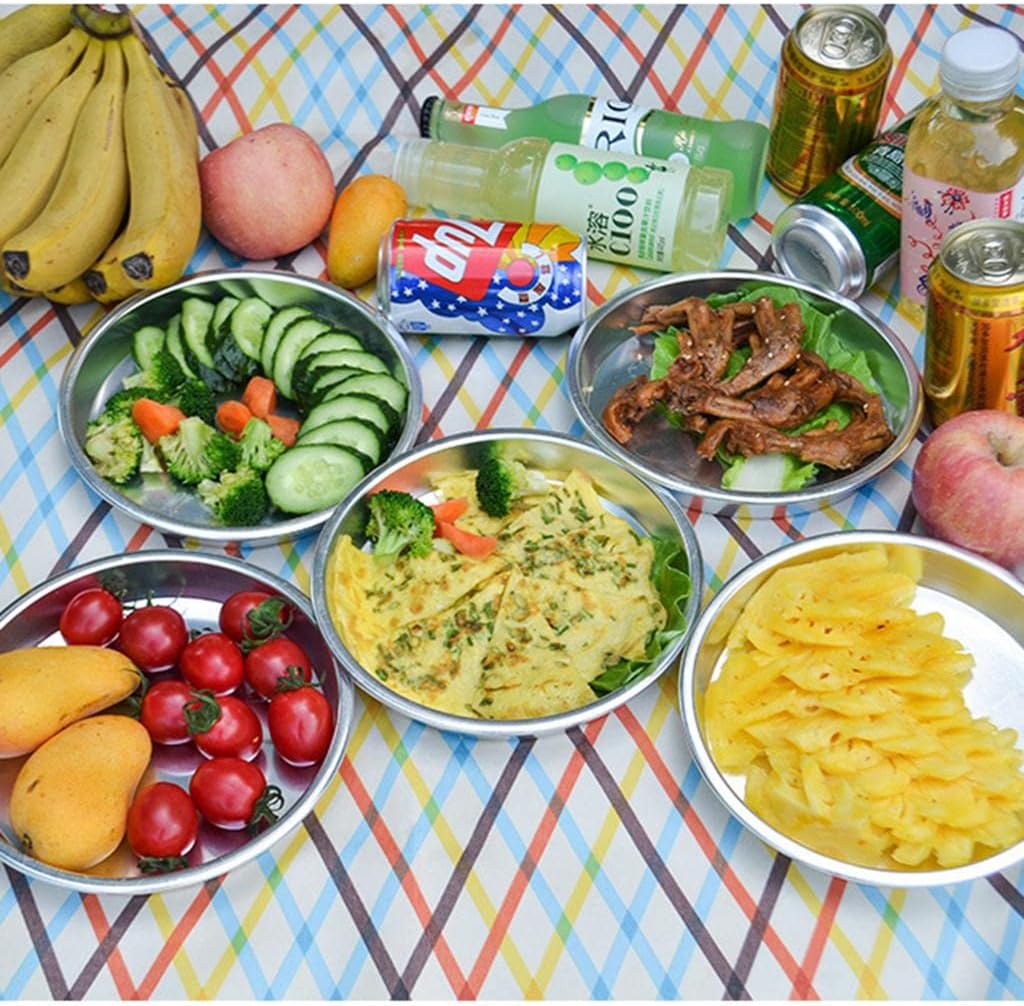 Description: - Made of aluminum alloy, durable, lightweight - 5 Pieces pack, stackable - Can hold fruit, vegetables, bread, bacon, etc. - 19.5cm diameter, large capacity - Multi-use for travel, camping, picnic, BBQ, fishing, backpacking, hiking, home use, etc.Specification: - Material: Aluminum Alloy - Diameter: Approx. 19.5cm / 7.7inch - Height: Approx. 2.7cm / 1.1 inchPackage Includes:5 Pieces Camping PlateNote:Please allow 1-2cm size deviation.Please note that our products are only the dishes, any food or fruit in the picture are just for illustration, not included.