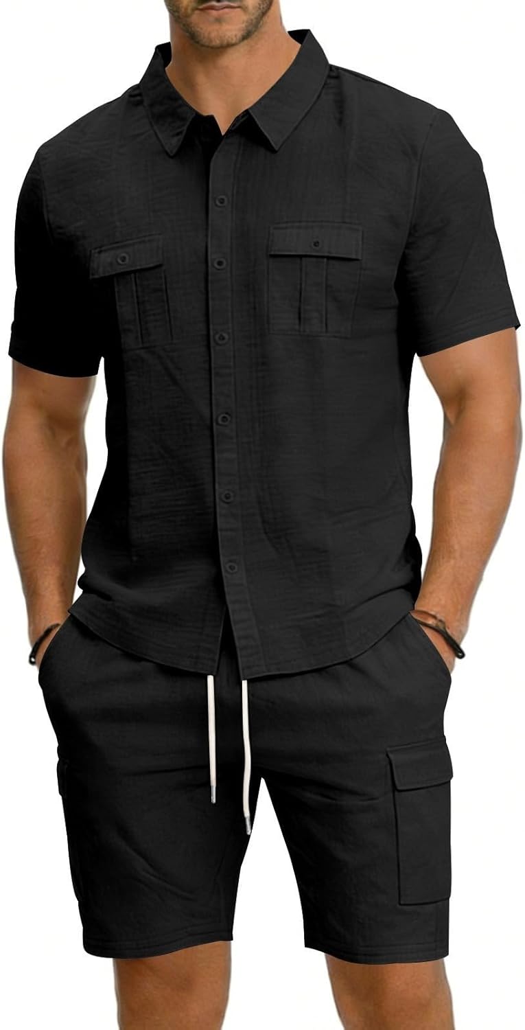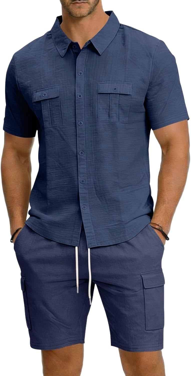 Main fabric composition: cotton + polyester fiberVersion: loose typeThickness: thinSleeve length: short sleevesStyle: sports and leisureSuitable season: summerApplicable scene: casualdrawstring pants, cargo pockets, lightweight fabric, quick-drying, breathable mesh, cool-touch material, stretch fabric, loose fit, silhouette pants, tapered pants, cuffed hem shorts, printed shirt, graphic T-shirt, solid color, striped pattern, plaid design, floral print, camouflage clothing, black shorts, white shirt, navy blue, gray pants, khaki pants, beige shorts, brown cargo pants, denim shorts, twill pants, twill shorts, corduroy pants, linen blend, cotton blend, performance wear, outdoor gear, hiking shorts, fishing shirt, swim trunks, beach shorts, beach pants, vacation wear, travel clothing, resort wear, cruise set, holiday set, music festival clothing, daily wear, loungewear pants, loungewear set, pajama shorts, pajama set