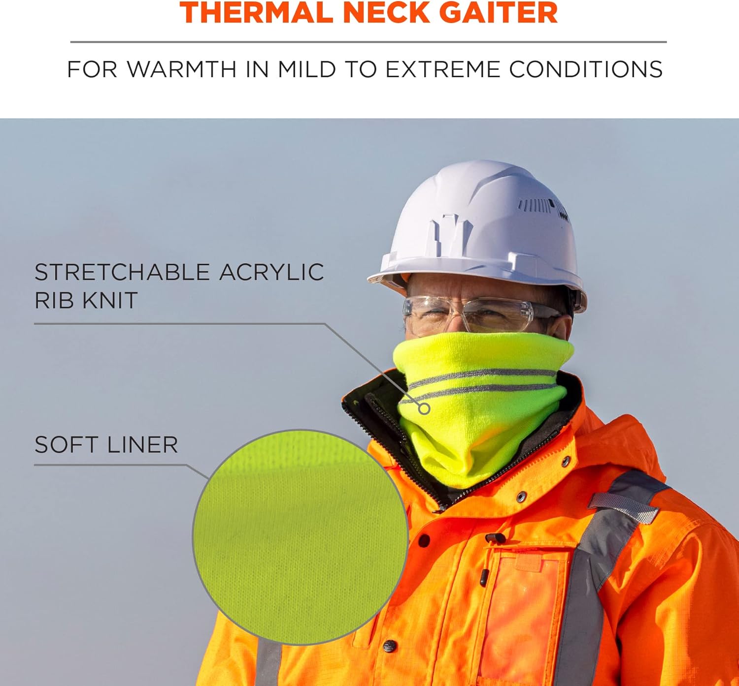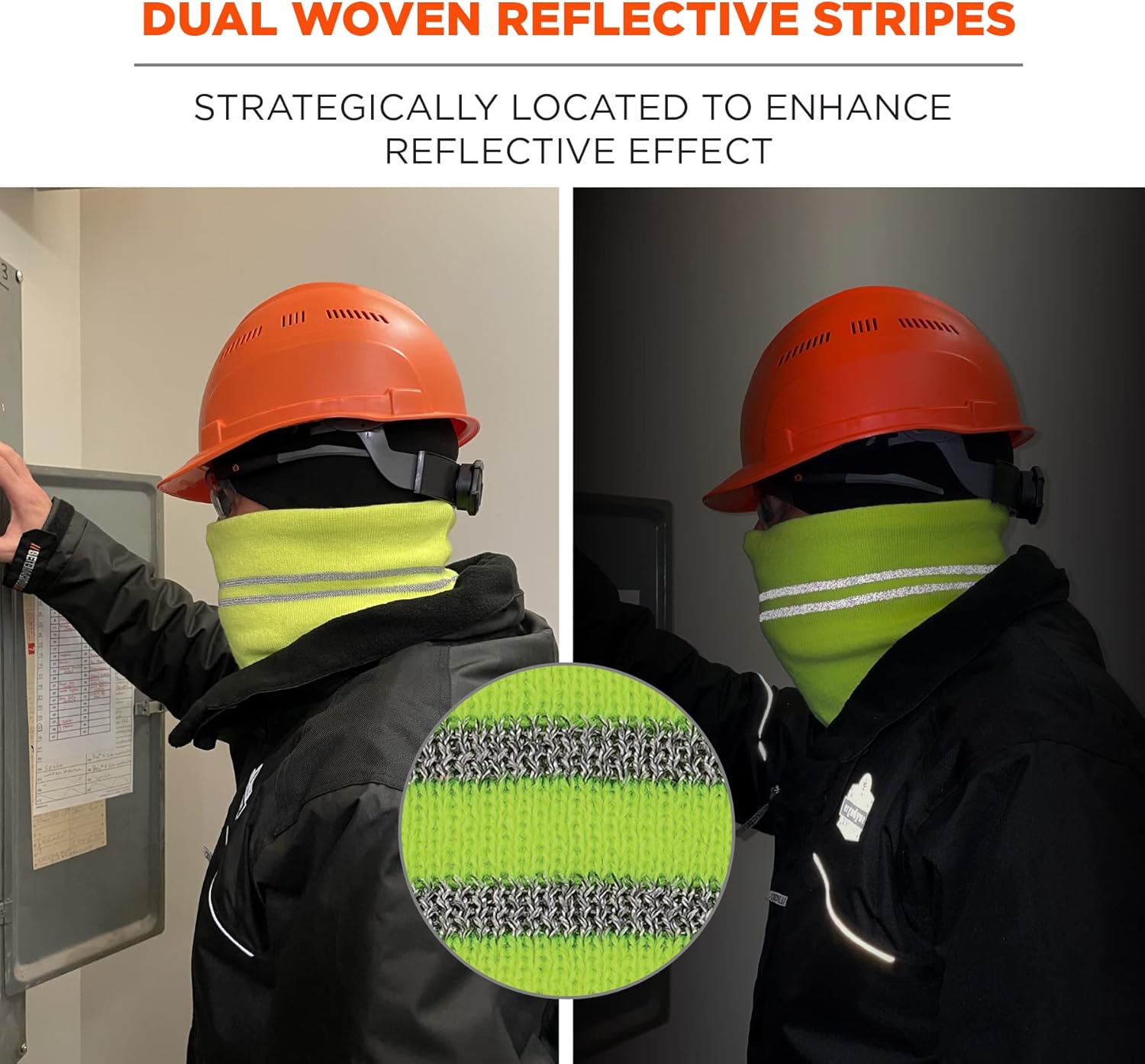 The N-Ferno 6961 Winter Neck Gaiter with reflective accents provides warm, no-bulk protection from demanding winter conditions while also enhancing visibility in low-light environments. The 100% stretchable acrylic shell with a soft liner makes for a snug, cozy fit that keeps cold out. Low-profile for wear alone or under hard hats. Unique to this neck warmer are 2 360° reflective stripes to keep wearers safe and seen. Strategically placed close to one another, the stripes enhance reflectivity at all angles and create a larger overglow effect when they come into contact with light. They are sewn directly into the gaiter to reduce tears and rips when being stretched or worn. A soft interior makes for a comfortable, cozy fit. This versatile neck warmer can be worn around the neck or pulled over the mouth, nose and ears. One size fits most, this neck gaiter is ideal for those working in low-light environments or at night in construction, transportation or weekend activities.