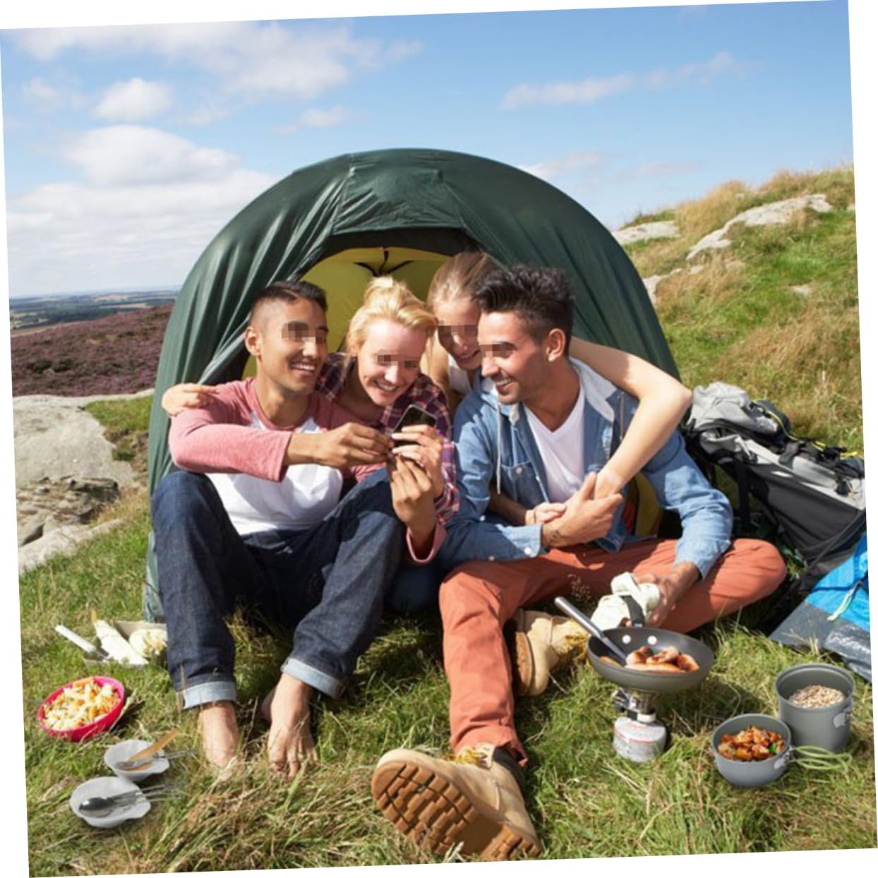 Package Include 1 x Small Pot 1 x Medium Pot 1 x spoon 1 x wooden spatula 3 x bowls 1 x Carabiner 1 x Stainless Steel Foldable /Fork/Spoon 1 x Mini Stove & Mini Stove box 1 x Dishwash 1 x Mesh Bag Features - Size: 12.2x10.5x 5cm Camping Cookware. - Material: Aluminium alloy. - Lightweight and extremely durable anodized aluminum perfect for camping backpacking Camping Kit. - This outdoor cooking set is designed perfectly for one or two people Kit. - Package includes one Non-stick bowl spoon set, Mini Stove with Ignition. A mesh bag was included as a . This outdoor cooking set is designed perfectly for one or two people camping cooking. - - All the objects in this cooking set can be stored together in a mesh bag for space saving and convenient carry.Goods DescriptionKit This item is suitable for camping, hiking, backpacking, picnic and other outdoor activities.Camping Cookware All the objects in this cooking set can be stored together in a mesh bag for space saving and convenient carry.camping cooking Lightweight and extremely durable anodized aluminum perfect for camping backpacking