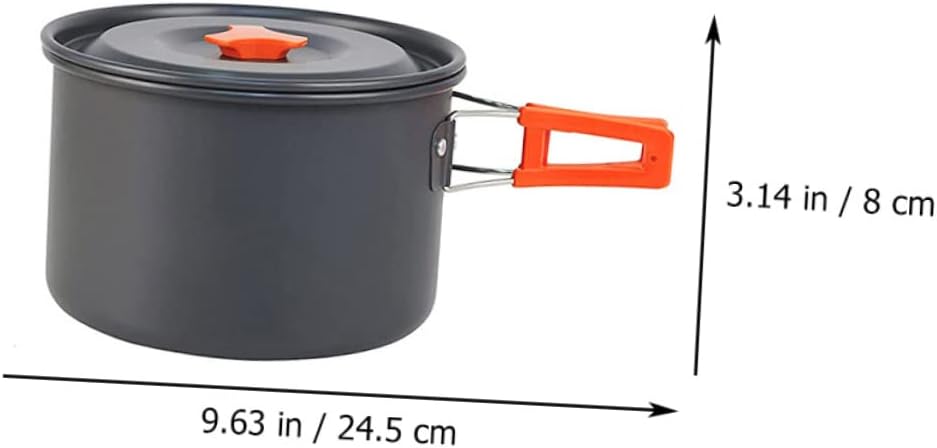 Package Include 1 x Cooking Pot 1 x Fry 1 x Soup Spoon 1 x Rice Scoop 1 x Loofah Cleaner 2 x Plastic Bowls 1 x Storage Bag 3 x Tablewares Characteristics -Material: Aluminum Alloy camping tableware -Size(Bowl): About 11.00X4.00cm/ 4.33X1.57in camping kitchenware -Size: 24.50X14.50X8.00cm/9.63X5.70X3.14in multifunctional camping cookware -Size(Frying ): About 15.50X3.50cm/ 6.10X1.38in(Handle: About 10cm/ 3.94in.) camping utensils metal -Size(Pot): About 14.50X14.50X8.00cm/ 5.70X5.70X3.14in camping cooking utensils -Color: Grey, Orange outdoor camping cookware -Size(Rice Scoop): About 16.00X7.80X2.00cm/6.29X3.07X0.78in camping cookware outdoor -Suitable for both outdoor and home use, it is not only for camping but also for mountaineering, fishing and barbecue camping utensil. -Adopted superior and , it will serve you portable camping cookware. -The cookware forms simple and convenient save space and facilitate carrying out outdoor cooking utensil camping kit. -With all the necessary items in the kitchen, you can easily enjoy cooking outdoors picnic cookware kit. -It's easy to clean, using these, it can give you a wonderful camping experience camping cooking tool.Goods Informationpicnic cookware kit This item is an outdoor tableware kit, adoption of , durable and strong.camping tool Easy to store and use and outdoors.camp cooking utensils It is a time-saving cooking toolkit.camping cookware outdoor Suitable for camping, backpacking, picnics and other outdoor activities