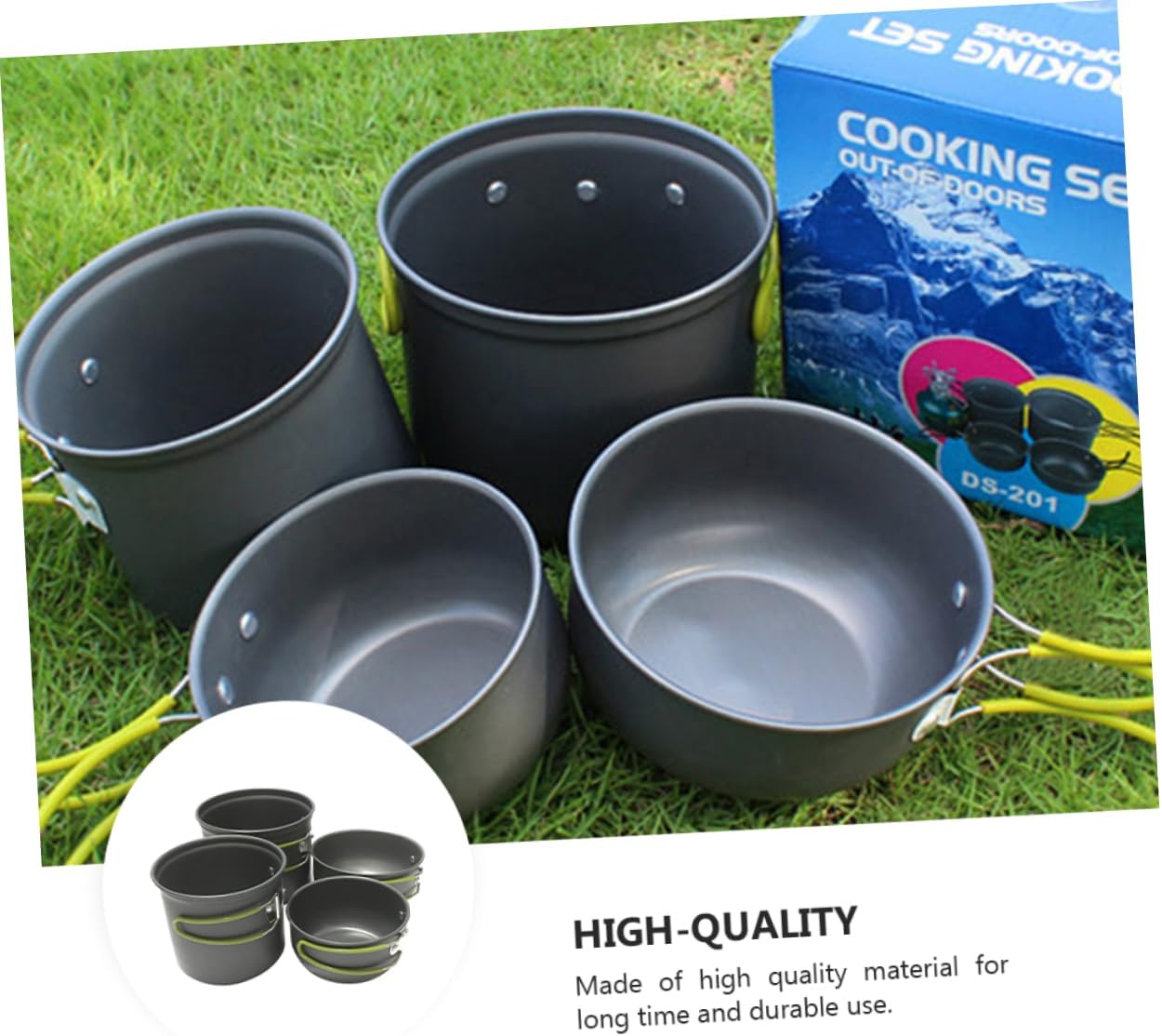 Package Include 4 x aluminum alloy pot Features -Color: Assorted Color camping cookware kit -Material: aluminum alloy portable cooking kits for outdoor -Size: About 16.50X14.00X13.50cm/6.48X5.50X5.31inch outdoor cooking equipment - Using non-stick camping cooking utensils, you can cook delicious food even in outdoor activities stainless camping cookware. - This outdoor cooking set is designed perfectly for 2-3 people backpacking cookware. - Lightweight and aluminum alloy perfect for camping backpacking outdoor portable cookware. - Reliable performance will help you cook food perfectly on the table every time outdoor portable pot. - Made of materials for and use outdoor picnic kitchenware.Goods Informationportable cooking kits for outdoor Lightweight and , it is perfect for camping backpacking, hiking, picnic and other outdoor activities.backpacking cookware This item is a set of cookware, including 4 pots, which is made of aluminum alloy materials for and long time use