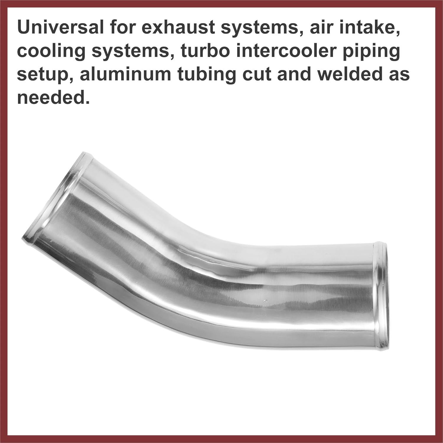 Features:Made of quality 6061 aluminum alloy material with a polished surface, for long service life.2mm thickness, more durable than other aluminum alloy pipes in the market.Humps at both ends to enhance stability, convenient for clamp installation.It improves the flow and performance of the engine cooling system.It connects the car's cooling system that makes sure the car engine work well.It is a universal product, suits most automotive cooler engines.Specification:Color: Silver ToneMaterial: 6061 Aluminum AlloyType: 45 Degree Bend ElbowWall Thickness: 2mm / 0.08"(T)Inner Diameter: 98mm / 3.86"(D)Outer Diameter: 102mm / 4"(D)Leg Length: 100mm / 4"Note:Please check the size carefully before ordering.Please allow 1-5mm differences due to manual measurement, thanks.Package Includes:1 Pcs Aluminum Alloy Intercooler Pipe