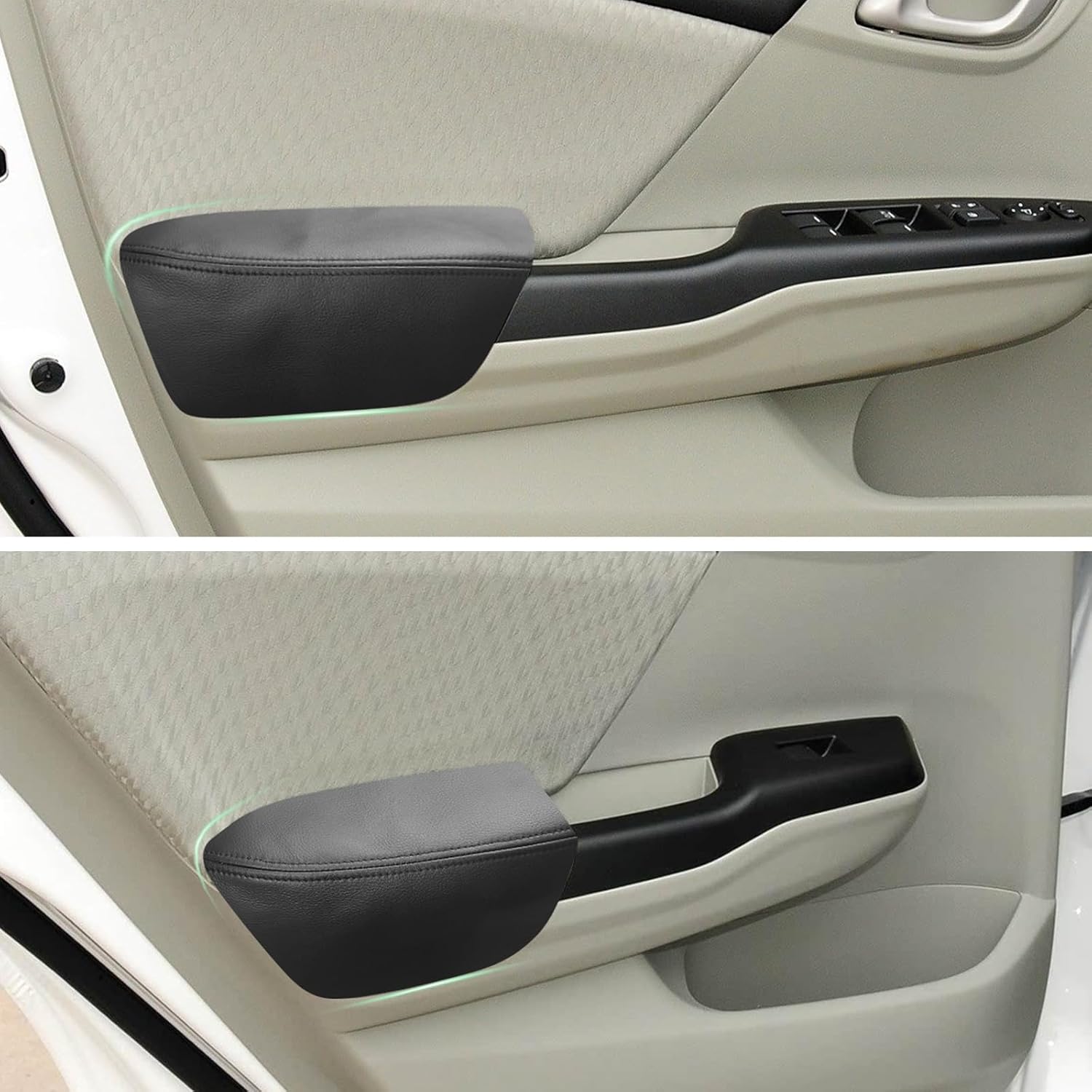 Fitment: Compatible with 2012 2013 2014 2015 Honda Civic 9th Gen Features Custom-made product size for special vehicles to full protection of your door armrest cover. Serve as reliable shields, protect your vehicle's armrests against the damage, scratches and stains; also guard your car from dirt, oil stains, and other contaminants, keeping your car clean and tidy. Unique impermeable leather material, no worry about getting mildewed, easy and convenient to clean with a wet cloth. Installation will take some time, please be patient and look forward to the final result. Specifications: Color: Black Material: PU Leather Package: 4* door armrest cover (Not hard armrest lid, adhesive is not included) Notes: 1. Please make sure your vehicle model before submitting the order. 2. We are committed to delivering superior products and providing highest level of satisfaction for you. If you have any question, please contact us and we will reply as soon as possible.