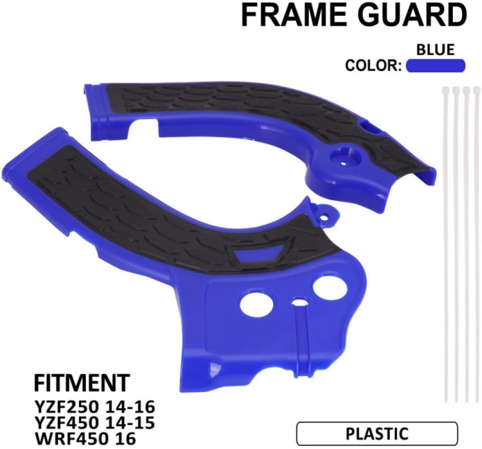 Fitment: For YZ250F 2014-2016 For YZ450F 2014-2015 For WR450F 2016 Features: 100% Brand New, Never Mounted, High Quality Hard shell abrasion resistant lightweight plastic, durable Perfect fit with no vibration noises Protecting the frame of the motorcycle from wear as well as adding more grip to the bike to hold onto. The is a frame guard that allows the rider to both protect the frame of the motorcycle from wear as well as adding more grip to the bike to hold onto. The motorcycle frame guard are designed to protect the most important and delicate parts of the motorcycle, absorbing shocks and preventing the frame and engine from being hit and damaged during the journey. Easy to install Specification: Material: Plastic Color:Blue Package Includes: 1 Set Frame Guard Instruction of Installation is NOT Included