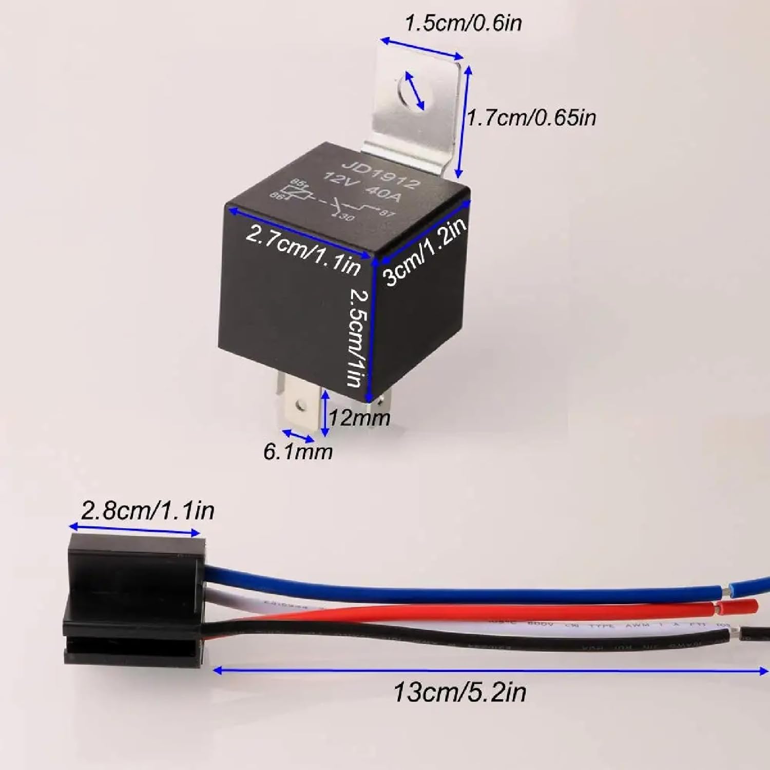 This JD1912 waterproof automotive relay is an essential component for controlling high-current electrical circuits in your vehicle. Rated at 12V and 40A, this robust relay can handle demanding automotive applications with ease, from headlights and fog lights to cooling fans and auxiliary power systems. The 5-pin configuration offers versatile wiring options for normally open or normally closed circuits, making it compatible with a wide range of vehicle electrical systems. Built with a waterproof design, this relay delivers reliable performance even in harsh automotive environments where moisture, dirt, and temperature fluctuations are common. The black and red copper terminals ensure excellent electrical conductivity while resisting corrosion over time. Each relay comes complete with a matching socket for straightforward installation, eliminating the need to source separate connectors. The compact design with mounting bracket allows for secure placement in tight engine compartments or other vehicle locations. Whether you're upgrading your vehicle's electrical system, replacing a failed relay, or building a custom automotive project, this general-purpose relay provides the durability and performance you need.
