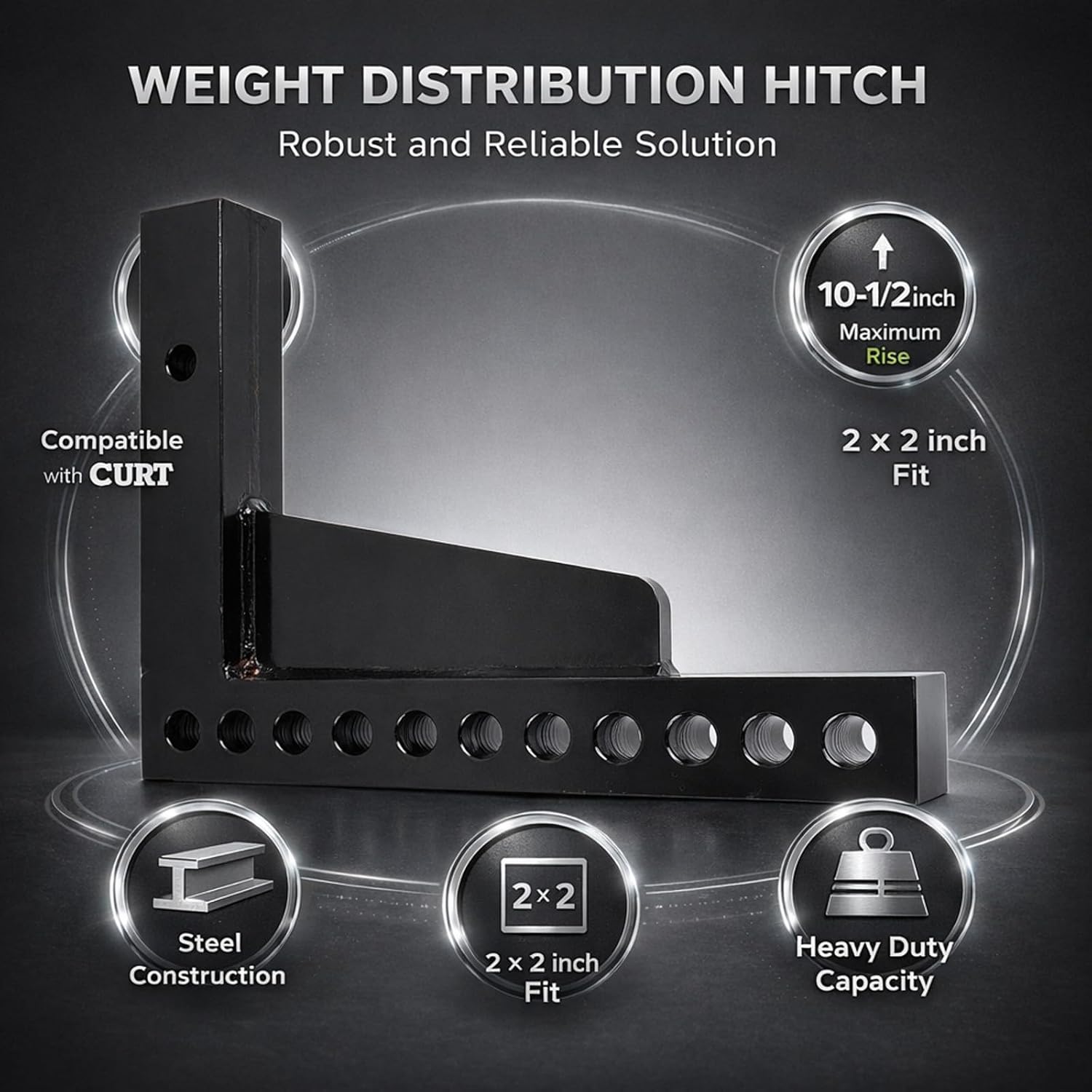 Item Type: Weight Distribution Hitch ShankMaterial: SteelOE: 17123Function: Offers a 7 inch maximum drop and a 10-1/2 inch maximum riseReceiver Tube Size: Fits 2 x 2in receiver tube openings with 5/8in hitch pin hole, and is compatible with any for CURT weight distribution hitchPackage List:1 x Weight Distribution Hitch ShankNote:Please double check the part number of your item, matching information is for reference only.