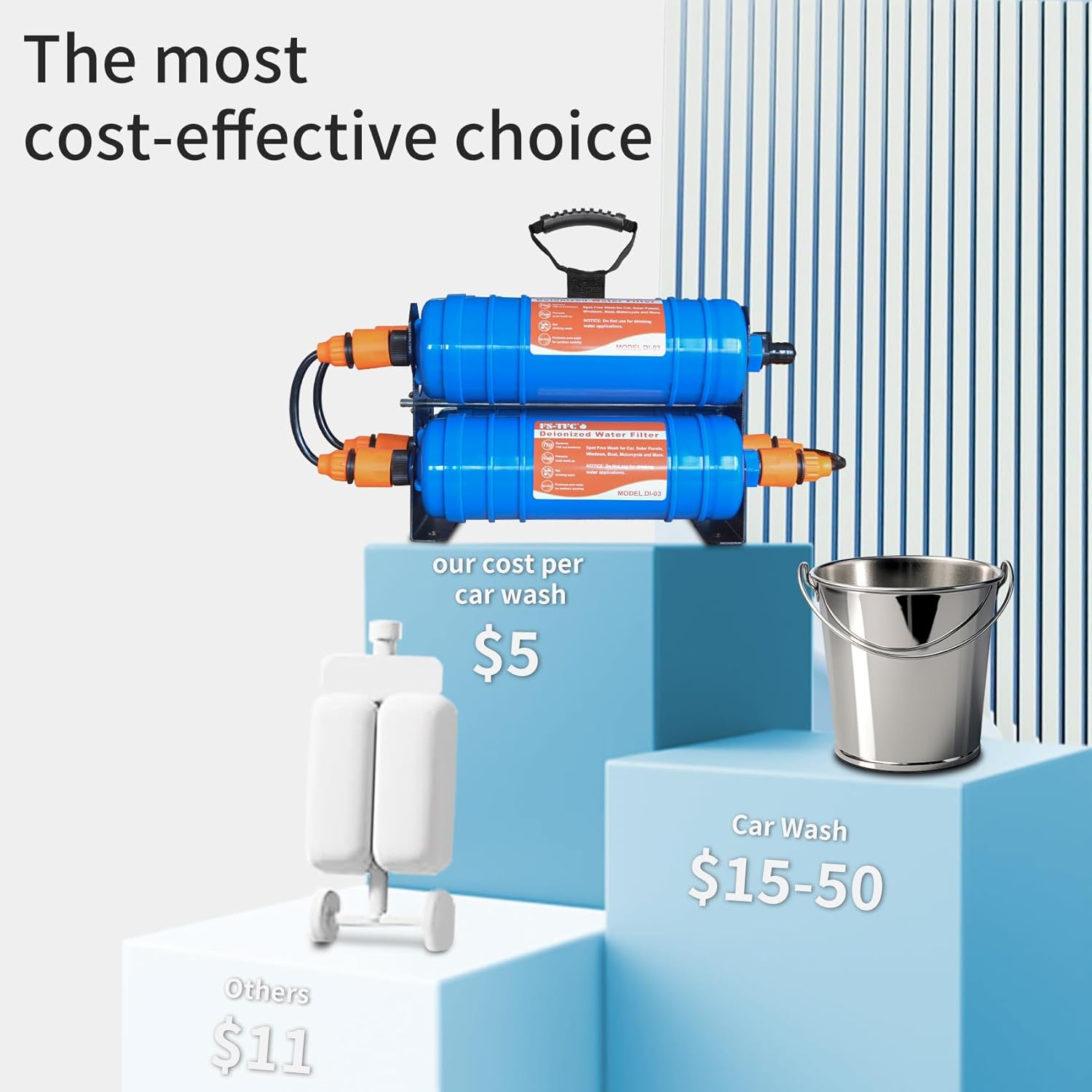 Achieve a spotless shine with the FS-TFC car wash system that produces filtered water with zero or near-zero Total Dissolved Solids (TDS). The DI-03 deionized water system is the perfect final step for rinsing your cars, RVs, boats, motorcycles, windows, and more, leaving them with a brilliant, sparkling finish. This system removes impurities and minerals from water, ensuring a streak-free and spotless clean every time. Upgrade your cleaning routine and experience the difference of a professional-grade rinse for a showroom-worthy shine.