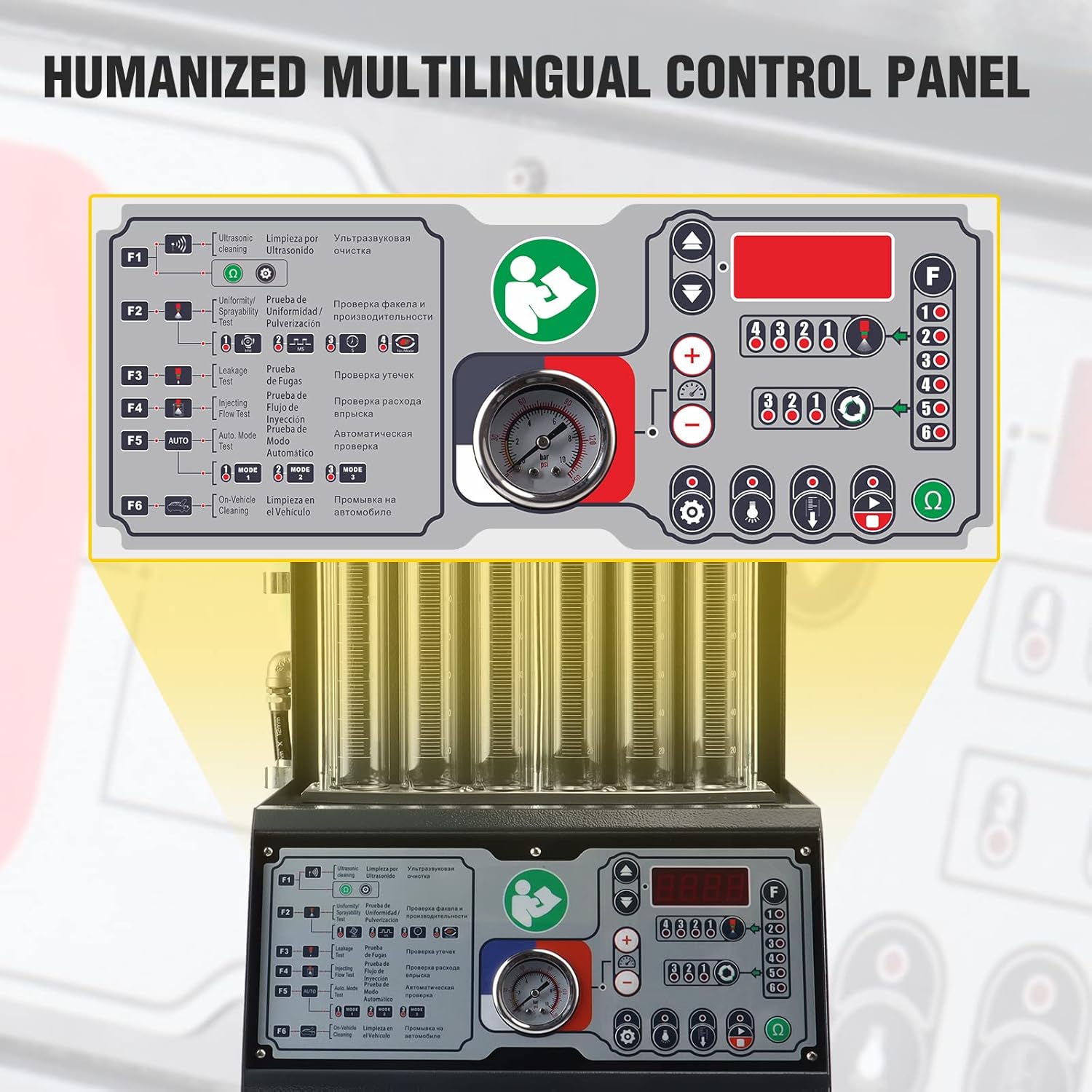 • 【POWERFUL FUNCTIONS】 The fuel injector cleaner tool has 9 main functions: Ultrasonic cleaning; Resistance test; Uniformity / Sprayability test; Leakage test; Injecting flow test; Auto. Test; On-Vehicle Cleaning; Low resistance injectors test function; Multi items Setting. Note: Please refer to the instructions for specific methods and steps.