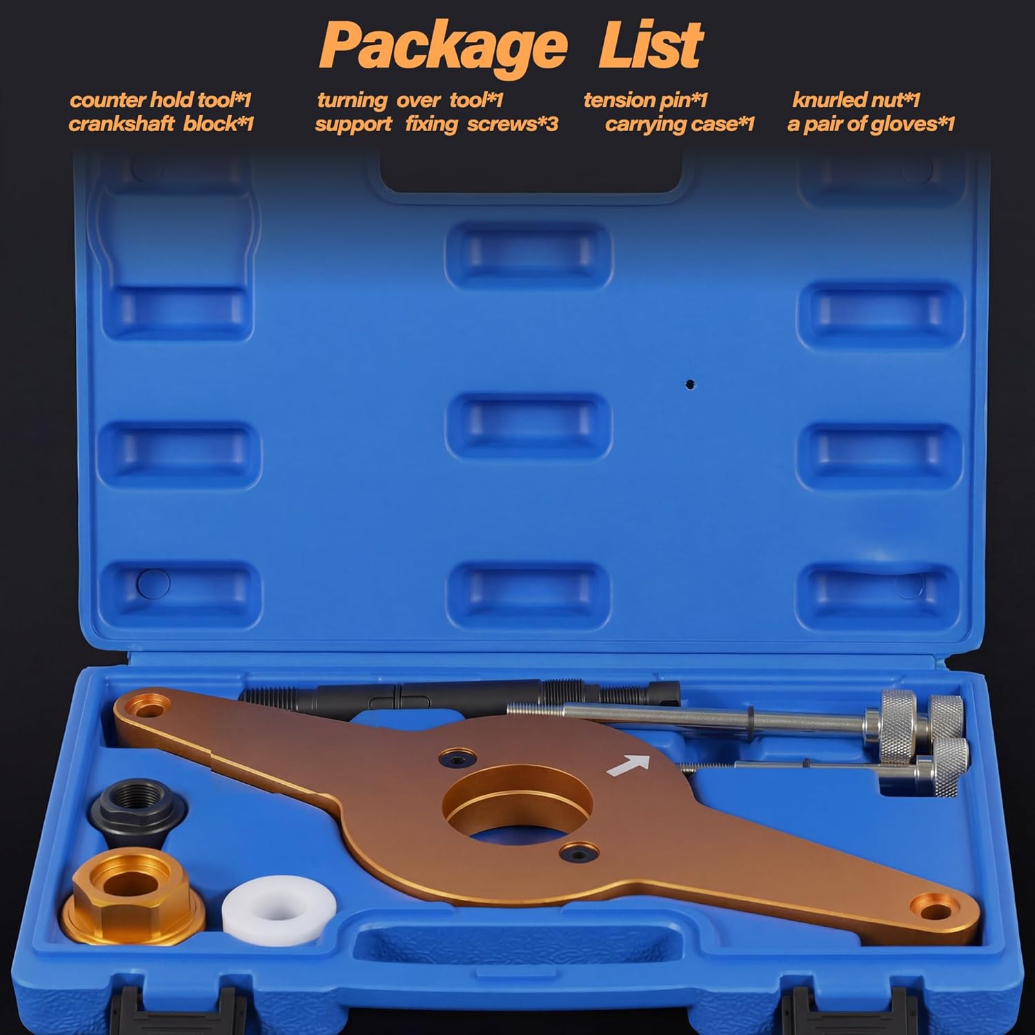 Vibration Damper Holding Tool specifically designed to securely hold the vibration damper (crankshaft pulley) when loosening or tightening the central crankshaft bolt, necessary for timing chain replacement, crankshaft seal repair, vibration damper removal, and other major engine services on 1.8L & 2.0L 4V TFSI EA888 enginesUpgraded 8-piece Vibration Damper Holding Tool Crankshaft Pulley Removal Shock Absorber is compatible with VW Audi Seat Skoda models’ EA888 engine family (Gen 1, Gen 2, & Gen 3), a direct, reliable replacement for tool T10531Forged from high-strength structural steel and other high-strength metals for superior durability, rust resistance, and anti-corrosion properties, Vibration Damper Holding Tool Crankshaft Pulley Removal Shock Absorber is high-precision CNC machined to ensure a perfect fit and exact positioningVibration Damper Holding Tool Crankshaft Pulley Removal Shock Absorber kit includes everything you need for the job: 1x Counter-Hold Tool, 1x Turning Over Tool, 1x Crankshaft Block, 1x Tension Pin, 1x Knurled Nut, and 3x Support Fixing Screws, ensuring reliable performance across all EA888 generationsVibration Damper Holding Tool Crankshaft Pulley Removal Shock Absorber Tool Kit comes neatly organized in a heavy-duty, custom-molded carrying case, safe and convenient to transport on the goPackage Includes1 x Counter Hold Tool1 x Turning Over Tool1 x Crankshaft Block1 x Tension Pin1 x Knurled Nut3 x Support Fixing Screws1 x Storage Case