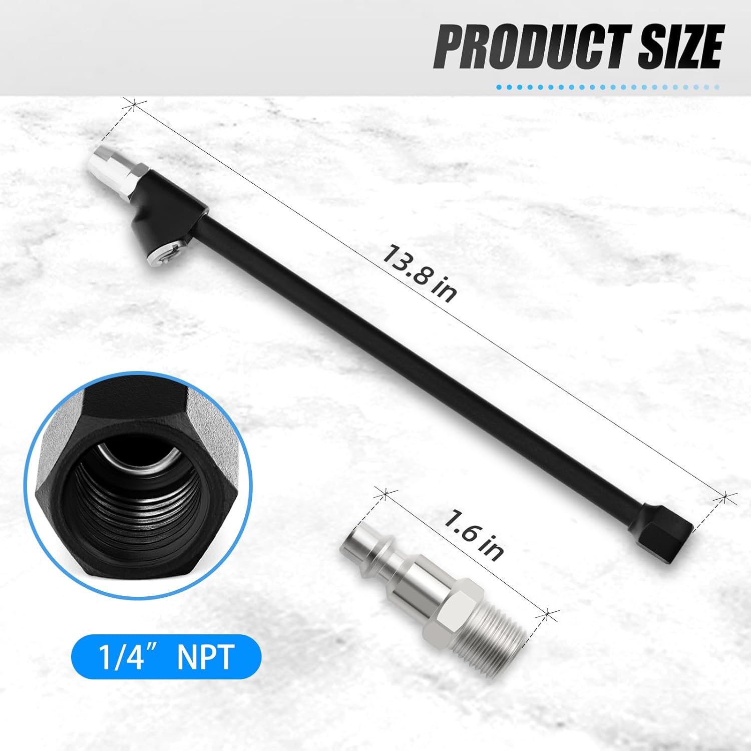 • 【AIR CHUCK】The air chuck allows you to easily inflate tyres located in tight spaces and hard-to-reach areas. 13.8" overall length allows you to easily inflate inner tyres on Truck, Bicycle, Motorbike, Car etc.