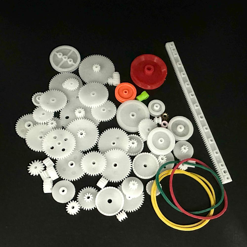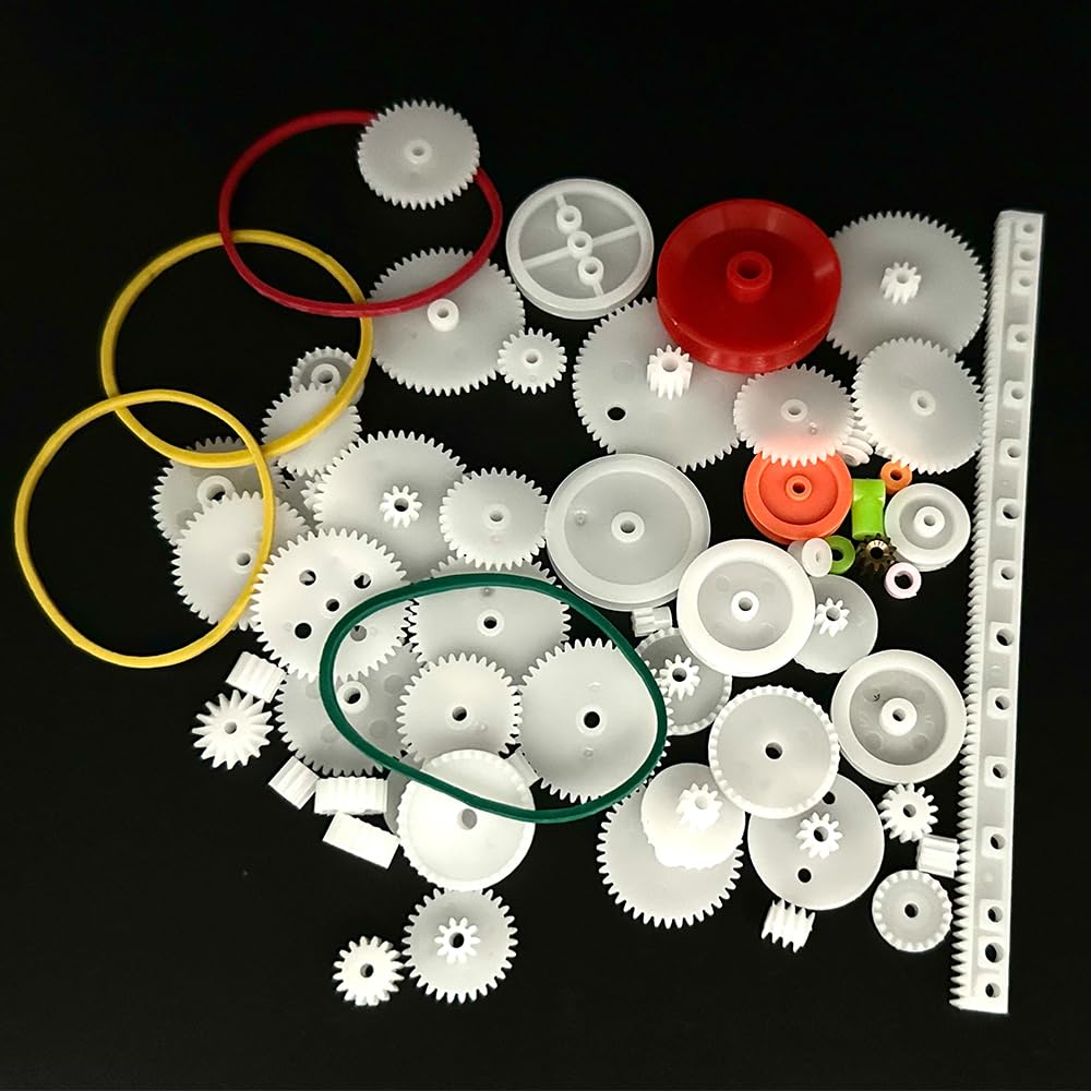 60PCS Plastic gears set belt pulley single gear reduction gear spindle gear small motor gears for dc motor,rc car,robot,model toy gear replacement,various style gear for you to choose,meet your diy project needs