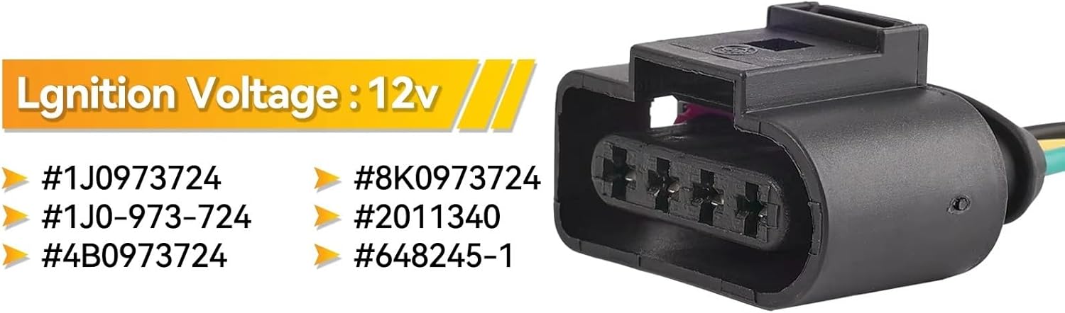 Ignition voltage: 12VIgnition Part Type: Ignition CoilOEM:1J0973724Package includes:4PCS Ignition Coil Wire Harness"