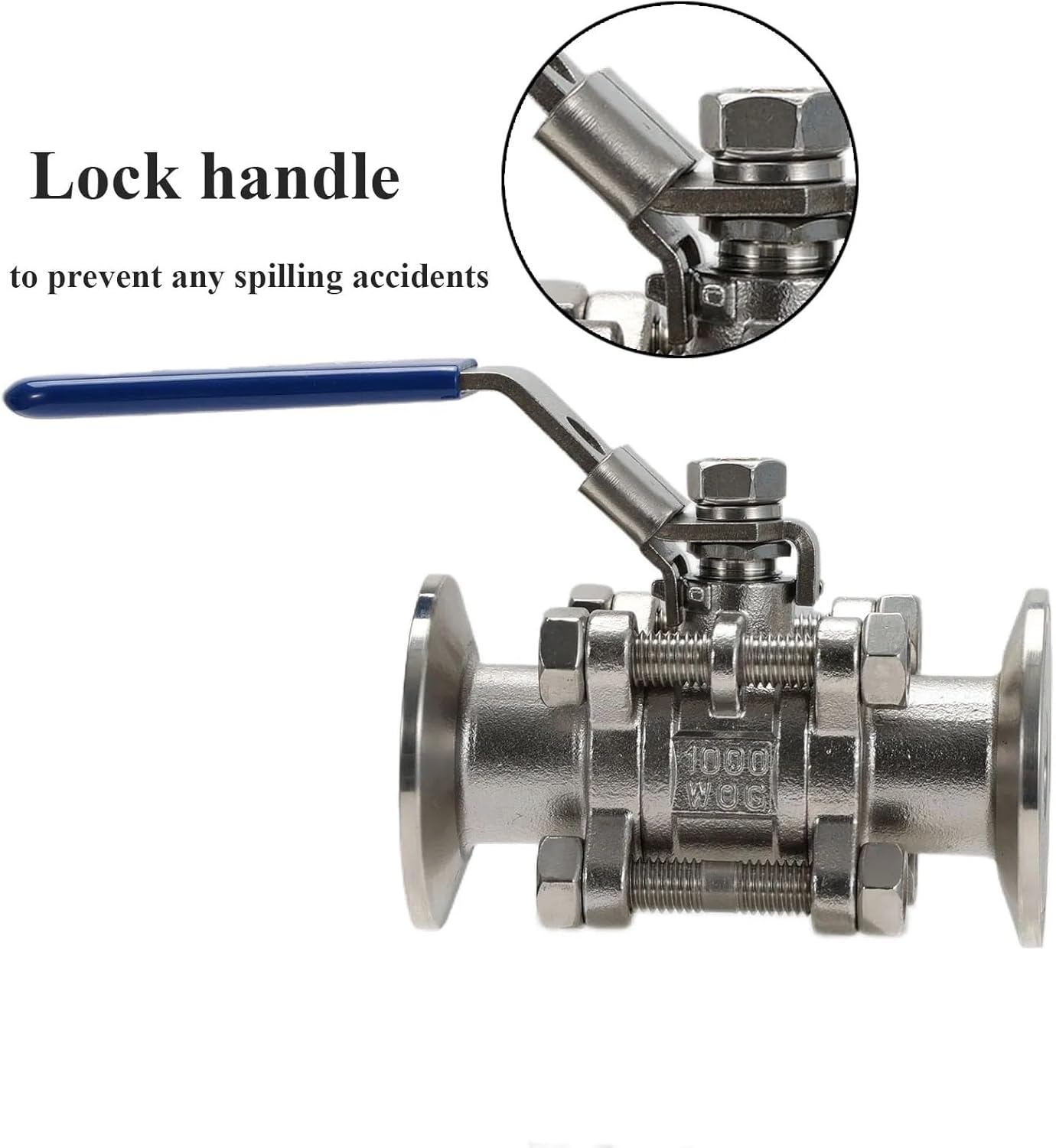 Proportioning Valves1pc Kettle Pump Fermenter Wort Chiller Ball Valve 3-Piece Style 1000 WOG Full Port Lock Handle SS304 PTFE Gasket
